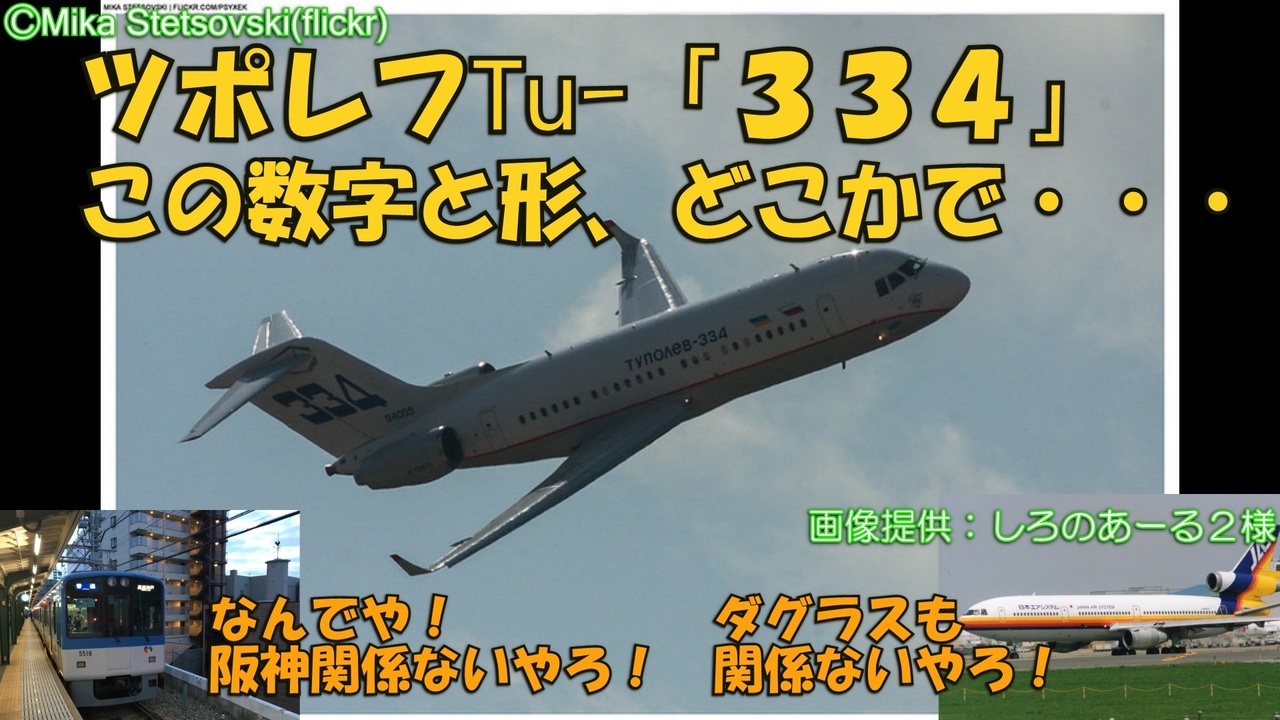 今回ご紹介するのはロシアの旅客機・ツポレフTu-334。<br><br>この数字だけを見て何となく嫌な予感を感じ、その飛行機の形状があの航空機メーカーの飛行機によく似ている事に気づいて更に嫌な予感を深めてしまったあなた。<br><br><br>・・・残念ながらその予感は当たってます。詳しくは本編で。<br><br><br>※当動画の内容は某プロ野球団の虎ウマとは一切関係ありません。<br /><span style="color: #000000; font-size: 14px;">迷航空会社列伝</span><span style="color: #006699; font-size: 14px;"><a href="https://www.nicovideo.jp/mylist/24098760" target="_blank" rel="noopener">mylist/24098760</a></span><span style="color: #000000; font-size: 14px;"> 迷列車北陸編</span><span style="color: #006699; font-size: 14px;"><a href="https://www.nicovideo.jp/mylist/19084652" target="_blank" rel="noopener">mylist/19084652</a> </span><span style="color: #000000; font-size: 14px;">東海道交通戦争</span><span style="color: #006699; font-size: 14px;"><a href="https://www.nicovideo.jp/mylist/57958388" target="_blank" rel="noopener">mylist/57958388</a></span><span style="color: #000000; font-size: 14px;"> 交通機関の栄枯盛衰 </span><a href="https://www.nicovideo.jp/mylist/66898301" target="_blank" rel="noopener">mylist/66898301</a><br><span style="color: #000000; font-size: 14px;">ブログ→</span><span style="color: #006699; font-size: 14px;"><a href="http://www.meihokuriku-alps.com" target="_blank" rel="noopener nofollow">http://www.meihokuriku-alps.com</a></span><br>note→<a href="https://note.com/meihokuriku" target="_blank" rel="noopener nofollow">https://note.com/meihokuriku</a><br><span style="color: #000000; font-size: 14px;">使用BGM<br>甘茶の音楽工房様 </span><span style="color: #006699; font-size: 14px;"><a href="http://amachamusic.chagasi.com/index.html" target="_blank" rel="noopener nofollow">http://amachamusic.chagasi.com/index.html</a></span><br><span style="color: #000000; font-size: 14px;">魔王魂様 </span><span style="color: #006699; font-size: 14px;"><a href="https://maoudamashii.jokersounds.com/list/bgm5.html" target="_blank" rel="noopener nofollow">https://maoudamashii.jokersounds.com/list/bgm5.html</a></span>