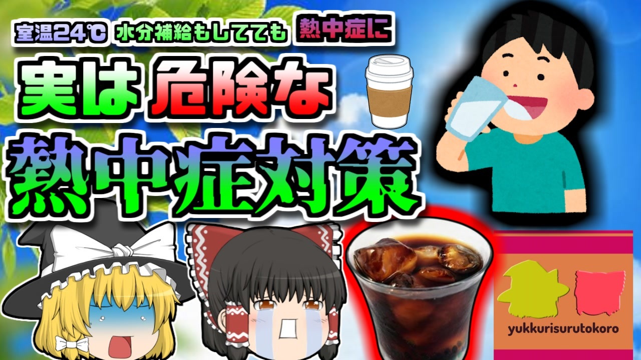 今回紹介するのは、リクエストがありました「熱中症」に関する事例です。<br>鹿児島県に暮らす男性「Aさん」はこの日、会社の車を運転し、営業のために市内を走り回っていました。<br>この日は気温32度を超える真夏日。<br>彼は熱中症を防ぐため、エアコンで車内の温度を下げ、度々コンビニなどに立ち寄って、アイスコーヒーを購入し、こまめに水分補給を行っていました。<br>そんなAさんでしたが、午後の営業の途中、突然意識不明状態になり、倒れてしまいました。<br><br>熱中症対策をとっていたにも関わらず、彼はなぜ熱中症になってしまったのでしょうか?<br>彼の対策には、意外な落とし穴がありました。<br><br><a href="#" class="seekTime" data-seekTime="00:00" onclick="seekNicoPlayer('#00:00'); return false;">#00:00</a> 冒頭挨拶<br><a href="#" class="seekTime" data-seekTime="00:52" onclick="seekNicoPlayer('#00:52'); return false;">#00:52</a> 視聴上の注意<br><a href="#" class="seekTime" data-seekTime="1:32" onclick="seekNicoPlayer('#1:32'); return false;">#1:32</a> 現地の説明<br><a href="#" class="seekTime" data-seekTime="2:38" onclick="seekNicoPlayer('#2:38'); return false;">#2:38</a> 会社員の「Aさん」<br><a href="#" class="seekTime" data-seekTime="3:18" onclick="seekNicoPlayer('#3:18'); return false;">#3:18</a> 彼の熱中症対策<br><a href="#" class="seekTime" data-seekTime="3:52" onclick="seekNicoPlayer('#3:52'); return false;">#3:52</a> アイスコーヒー<br><a href="#" class="seekTime" data-seekTime="4:48" onclick="seekNicoPlayer('#4:48'); return false;">#4:48</a> 異変<br><a href="#" class="seekTime" data-seekTime="5:52" onclick="seekNicoPlayer('#5:52'); return false;">#5:52</a> 対策しても熱中症に?<br><a href="#" class="seekTime" data-seekTime="6:30" onclick="seekNicoPlayer('#6:30'); return false;">#6:30</a> 根本的な間違い<br><a href="#" class="seekTime" data-seekTime="7:16" onclick="seekNicoPlayer('#7:16'); return false;">#7:16</a> 利尿作用による脱水<br><a href="#" class="seekTime" data-seekTime="8:49" onclick="seekNicoPlayer('#8:49'); return false;">#8:49</a> 取り返しのつかない事になる場合も<br><a href="#" class="seekTime" data-seekTime="10:15" onclick="seekNicoPlayer('#10:15'); return false;">#10:15</a> カフェイン、利尿作用に注意<br><a href="#" class="seekTime" data-seekTime="11:26" onclick="seekNicoPlayer('#11:26'); return false;">#11:26</a> 適切な予防方法を<br><br>引用・出展・参考文献<br>厚生労働省 熱中症予防のための情報・資料<br><a href="https://ishort.ink/igUS" target="_blank" rel="noopener nofollow">https://ishort.ink/igUS</a><br><a href="https://ishort.ink/qo7i" target="_blank" rel="noopener nofollow">https://ishort.ink/qo7i</a><br>熱中症予防のために<br><a href="https://ishort.ink/S9x9" target="_blank" rel="noopener nofollow">https://ishort.ink/S9x9</a><br>総務省<br><a href="https://ishort.ink/srHy" target="_blank" rel="noopener nofollow">https://ishort.ink/srHy</a><br>ヒロオカクリニック<br><a href="https://ishort.ink/DQLH" target="_blank" rel="noopener nofollow">https://ishort.ink/DQLH</a><br><br>健康長寿ネット<br><br><a href="https://ishort.ink/xsna" target="_blank" rel="noopener nofollow">https://ishort.ink/xsna</a><br><br>水の飲み方は大切 - サントリー<br><br><a href="https://ishort.ink/EjhF" target="_blank" rel="noopener nofollow">https://ishort.ink/EjhF</a><br>鹿児島県<br><a href="https://ishort.ink/HTGK" target="_blank" rel="noopener nofollow">https://ishort.ink/HTGK</a><br>その他視聴者提供資料など<br><br><br><br><br><br><br><br />※この動画は過去の事件を知り、現在でも同じことが発生する危険性を再認識、関与しないように促すための動画であり、視聴者を扇動、動揺を誘うためのコンテンツではありません。<br><br>ご要望にお応えして、メンバーシップの開設を行いました。<br>下記URLからも登録可能ですので、ご興味がある方は是非ご参加ください。<br><a href="https://www.youtube.com/channel/UCcT5a1J7XJW7CLYI2RKl4pw/join" target="_blank" rel="noopener nofollow">https://www.youtube.com/channel/UCcT5a1J7XJW7CLYI2RKl4pw/join</a><br><br><br>Twitter<br>→<a href="https://twitter.com/yukkurisurutoko" target="_blank" rel="noopener nofollow">https://twitter.com/yukkurisurutoko</a><br><br>取り急ぎ、簡易的にですがマイリストを作りました。<br>【ゆっくり解説】事故・事件関係紹介リスト <br><a href="https://www.nicovideo.jp/mylist/71034319" target="_blank" rel="noopener nofollow">https://www.nicovideo.jp/mylist/71034319</a><br>【ゆっくり解説】放射線系事故<br><a href="https://www.nicovideo.jp/mylist/71034368" target="_blank" rel="noopener nofollow">https://www.nicovideo.jp/mylist/71034368</a><br>【ゆっくり解説】鉄道系事故・事件関連<br><a href="https://www.nicovideo.jp/mylist/71034379" target="_blank" rel="noopener nofollow">https://www.nicovideo.jp/mylist/71034379</a>
