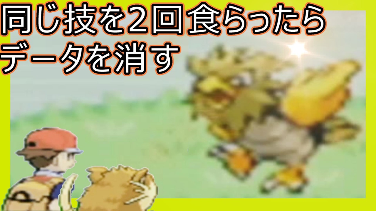 ノーカット版→<a href="https://www.youtube.com/channel/UCZpP0UTNYyY7Swh7klqBohg" target="_blank" rel="noopener nofollow">https://www.youtube.com/channel/UCZpP0UTNYyY7Swh7klqBohg</a><br><br>前→<a href="https://www.nicovideo.jp/watch/sm40826400" class="watch">sm40826400</a><br>レベル上げ中の雑談→<a href="https://www.nicovideo.jp/watch/sm40556138" class="watch">sm40556138</a><br>次→<a href="https://www.nicovideo.jp/watch/sm40856217" class="watch">sm40856217</a><br><br><br>【ルール】<br>・同じ技を2回受けたらデータ削除<br>・受けた技は全ポケモン共通<br>・「当たる」技のみを対象とする<br>(外れた場合はカウントしない)<br><br>・自己強化技(かたくなる等)は含まれない<br>・天候技(あまごい)は含まれない<br>・複数攻撃技(タネマシンガン等)は1セットで1回とする<br>・溜め技(ソーラービーム等)は 技が当たったタイミングで1回とする<br>・特性は含まれない<br><br>(例)<br>・たいあたり:2回当たればOUT<br>・なきごえ:2回当たればOUT<br>・さいみんじゅつ:2回当たればOUT<br>・かたくなる:何度使われても問題ない<br>・タネマシンガン:「4回当たった!」⇒1回目なのでSAFE、「3回当たった!」⇒2回目なのでOUT<br>・ソーラービーム:溜めている状態ではカウントしない、技が当たれば1回<br>・のろい(ゴーストタイプの場合)⇒2回当たればOUT<br>・のろい(その他タイプの場合)⇒何度使われても問題ない<br><br><span style="color: #ff0000; font-size: 18px;"><strong>その他、書いてないことは随時追記していきます。<br>判断は全て私がします!</strong></span><br><br>【ツイッター】<a href="https://twitter.com/masa1225kami" target="_blank" rel="noopener nofollow">https://twitter.com/masa1225kami</a> <br><br>【ニコニコ】<a href="http://www.nicovideo.jp/user/36246593" target="_blank" rel="noopener nofollow">http://www.nicovideo.jp/user/36246593</a><br>