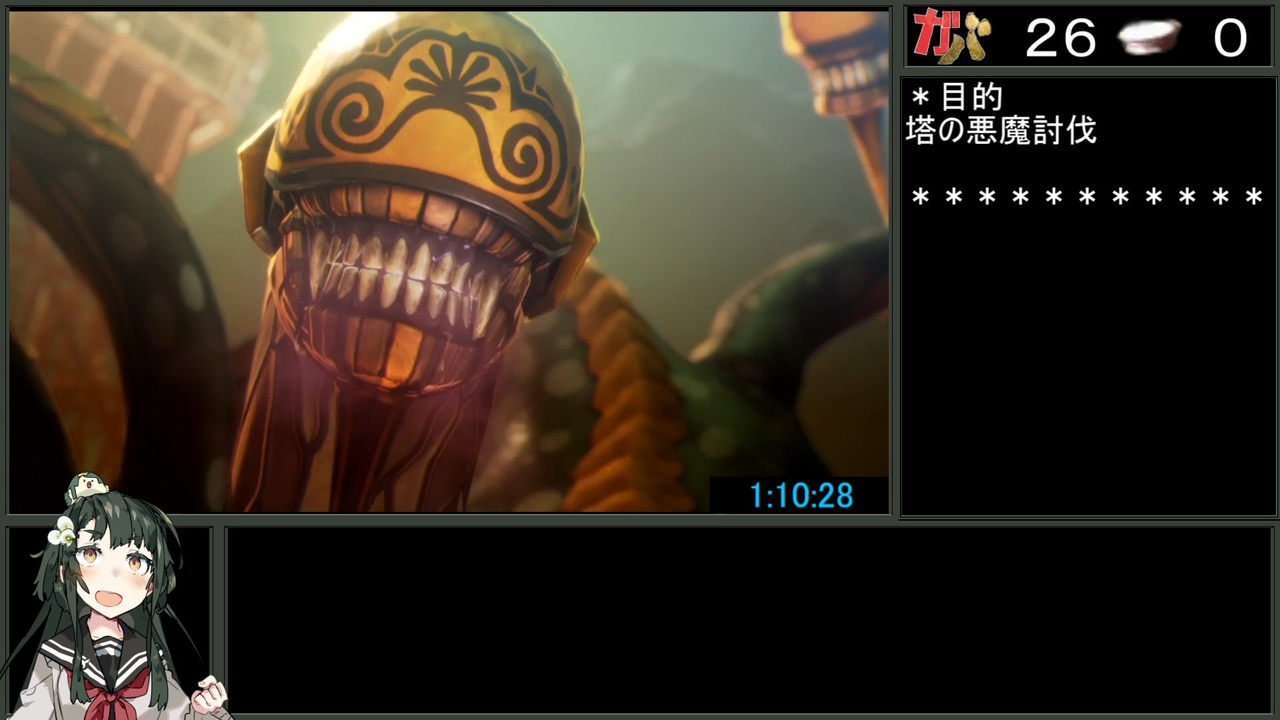 最初の2回なのでスパン短めの投稿になります、次回からは1週間おかせ亭₍ ᐢ. ̫ .ᐢ ₎<br>ミタ~塔の悪魔戦まで<br><br>○計測区画<br>難易度選択で「はい」を選択~「人修羅と九人の魔人」クエスト達成のウィンドウを閉じるまで<br><br>○プレイ条件<br>・難易度は「HARD」<br>・配信禁止区間への進行及び、「万古の神殿4F」以降のエリアへの侵入禁止<br> ※アトラスのガイドライン遵守レギュ<br>・稼ぎを含むDLCの導入可<br>・シナリオボス戦は主人公のレベルがボスレベル±2以内に収まるようにする<br>・自動効果スキル「セーフティ」の活用禁止<br>・低HPでのボス戦突入禁止<br>・「真・女神転生V」パッケージ版 ©ATLUS ©SEGA<br><br><a href="https://www.nicovideo.jp/watch/sm40836802" class="watch">sm40836802</a>:前 次:<a href="https://www.nicovideo.jp/watch/sm40872138" class="watch">sm40872138</a><br>Part1:<a href="https://www.nicovideo.jp/watch/sm40836802" class="watch">sm40836802</a>
