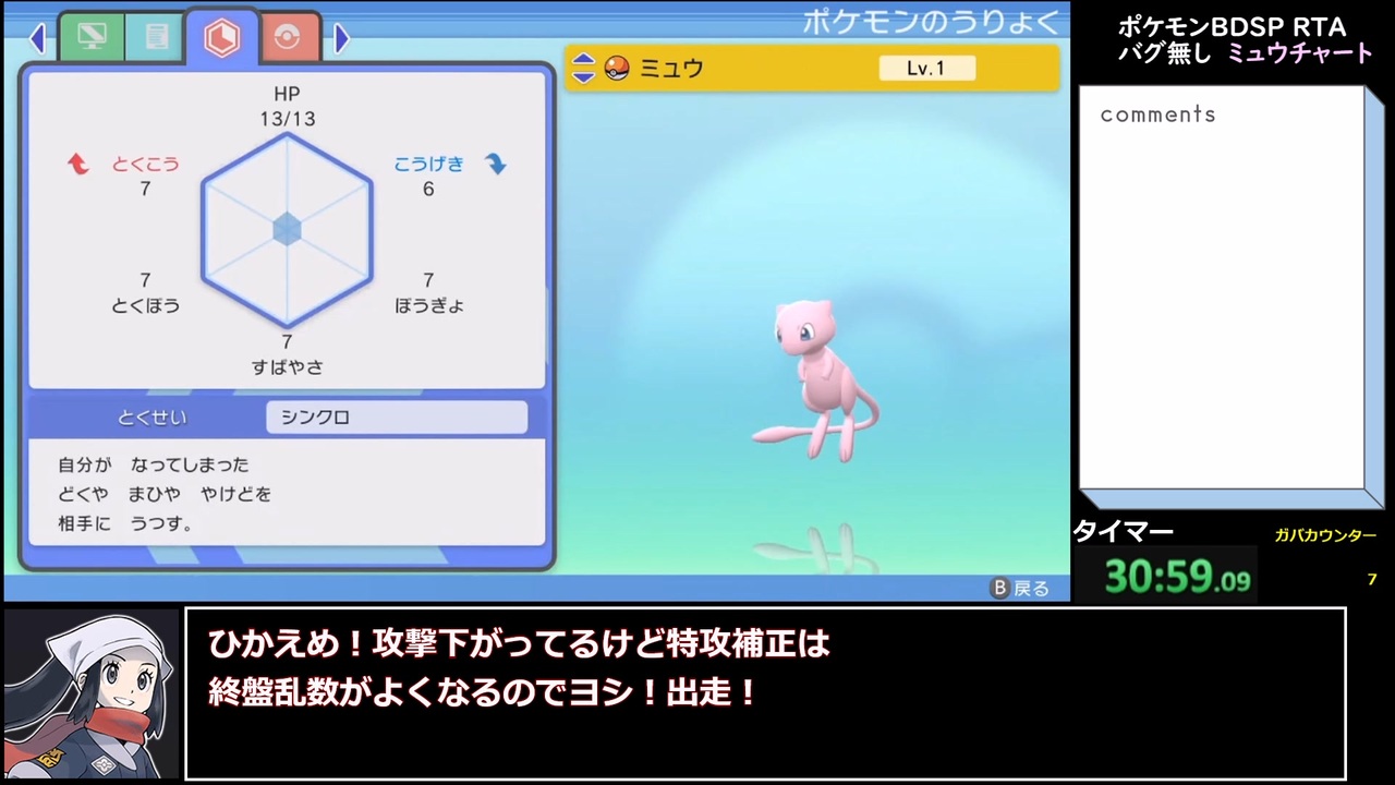 <strong>未来は既にオレの手の中にあるので初投稿です。</strong><br><br>ポケットモンスターBDSP(ブリリアントダイヤモンド)のAny%RTAを走りました。<br>投稿時点で、Speedrun.com上で6位の記録です。(<a href="https://www.speedrun.com/pkmnbdspext#Alt_Main)" target="_blank" rel="noopener nofollow">https://www.speedrun.com/pkmnbdspext#Alt_Main)</a><br>無編集版はYoutubeにアップロードしています。→ <a href="https://youtu.be/rG9F70xo_V0" target="_blank" rel="noopener nofollow">https://youtu.be/rG9F70xo_V0</a><br><br>【追記】7:47あたりでムックルの個体値が固定と説明していますが、正しくは<br>「個体値2か所が2V以上固定(残りはランダム)」でした。<br>デンボク団長が腹を斬ってお詫びいたします。<br><br>【追記その2】(ナナカマド博士)×ホウエン⇒〇シンオウ、×リッシ湖⇒〇シンジ湖<br> ポケモン初心者か?<br><br>part1→ ここ<br>part2→ <a href="https://www.nicovideo.jp/watch/sm40871536" class="watch">sm40871536</a><br><br>使用BGM:Pokémon DP Sound Libraryより『ゲームコーナー/スロット当たり』<br> ©2006 Pokémon. ©1995-2006 Nintendo/Creatures Inc./GAME FREAK inc.<br>これは「Pokémon DP Sound Library」の利用規約に同意し作成されたコンテンツです。<br />投稿者Twitter→ <a href="https://twitter.com/Camptocin530" target="_blank" rel="noopener nofollow">https://twitter.com/Camptocin530</a><br><br>ポケモン本編マイリスト→<a href="https://www.nicovideo.jp/mylist/73531355" target="_blank" rel="noopener">mylist/73531355</a><br>