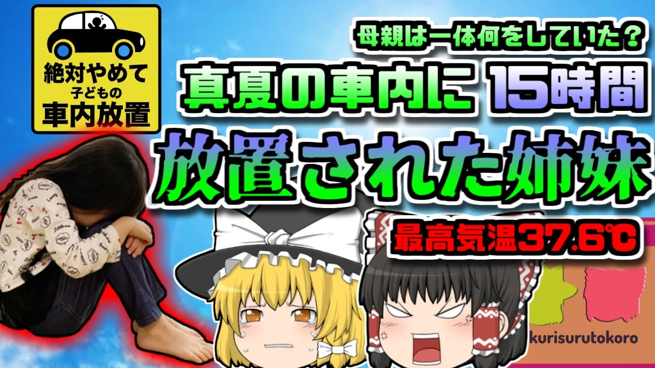 <br>今回紹介するのは、以前リクエストをもらっていました「香川県女児車内放置事件」です。<br>2020年9月2日、午後9時ごろ。<br>香川県高松市のとある駐車場には、一台の高級車が停止していました。<br>この車を運転するのは、市内に暮らす専業主婦の女性「Aさん」(26)。<br>彼女は6歳と3歳の娘たちを連れ、この有料駐車場を訪れていました。<br>彼女は近くの飲食店にお酒を飲みに行くため、車内に娘二人を置いたまま、車の鍵を閉めて出かけていきました。<br>しかし、彼女が再び戻った時には、二人の意識はなく、重度の熱中症でこの世を去ってしまいました。<br>それも当然。<br>この日は最高気温37度以上にもなる猛暑日。<br>しかも彼女は2日の夜から翌日の昼頃まで、<br>なんと15時間以上娘たちを放置していました。<br>何故、彼女はこのような恐ろしい行動をとってしまったのか。<br>その背景には、人間関係、育児、ストレス、市内の情勢など、様々なものがありました。<br><a href="#" class="seekTime" data-seekTime="00:00" onclick="seekNicoPlayer('#00:00'); return false;">#00:00</a> 冒頭挨拶<br><a href="#" class="seekTime" data-seekTime="00:39" onclick="seekNicoPlayer('#00:39'); return false;">#00:39</a> 視聴上の注意・免責事項<br><a href="#" class="seekTime" data-seekTime="1:17" onclick="seekNicoPlayer('#1:17'); return false;">#1:17</a> 現地の説明<br><a href="#" class="seekTime" data-seekTime="1:48" onclick="seekNicoPlayer('#1:48'); return false;">#1:48</a> 母親の「Aさん」<br><a href="#" class="seekTime" data-seekTime="2:23" onclick="seekNicoPlayer('#2:23'); return false;">#2:23</a> 子どもを残して飲みに…<br><a href="#" class="seekTime" data-seekTime="2:52" onclick="seekNicoPlayer('#2:52'); return false;">#2:52</a> 戻ったころには<br><a href="#" class="seekTime" data-seekTime="4:06" onclick="seekNicoPlayer('#4:06'); return false;">#4:06</a> 警察の捜査<br><a href="#" class="seekTime" data-seekTime="3:48" onclick="seekNicoPlayer('#3:48'); return false;">#3:48</a> Aさんの話では<br><a href="#" class="seekTime" data-seekTime="5:07" onclick="seekNicoPlayer('#5:07'); return false;">#5:07</a> しかし真実は・・・<br><a href="#" class="seekTime" data-seekTime="6:27" onclick="seekNicoPlayer('#6:27'); return false;">#6:27</a> 車の中に残されていたのは<br><a href="#" class="seekTime" data-seekTime="7:05" onclick="seekNicoPlayer('#7:05'); return false;">#7:05</a> あの日は猛暑日だった<br><a href="#" class="seekTime" data-seekTime="8:43" onclick="seekNicoPlayer('#8:43'); return false;">#8:43</a> 以前から飲み歩いていた<br><a href="#" class="seekTime" data-seekTime="9:31" onclick="seekNicoPlayer('#9:31'); return false;">#9:31</a> Aさんの夫<br><a href="#" class="seekTime" data-seekTime="10:38" onclick="seekNicoPlayer('#10:38'); return false;">#10:38</a> 娘の机からは…<br><a href="#" class="seekTime" data-seekTime="10:58" onclick="seekNicoPlayer('#10:58'); return false;">#10:58</a> その後の裁判<br><a href="#" class="seekTime" data-seekTime="11:54" onclick="seekNicoPlayer('#11:54'); return false;">#11:54</a> 事件の背景にあったもの<br><a href="#" class="seekTime" data-seekTime="14:35" onclick="seekNicoPlayer('#14:35'); return false;">#14:35</a> こうなる前に何とかならなかったのか<br><a href="#" class="seekTime" data-seekTime="15:18" onclick="seekNicoPlayer('#15:18'); return false;">#15:18</a> 育児の大変さ<br><a href="#" class="seekTime" data-seekTime="15:29" onclick="seekNicoPlayer('#15:29'); return false;">#15:29</a> 過去にも<br><a href="#" class="seekTime" data-seekTime="16:54" onclick="seekNicoPlayer('#16:54'); return false;">#16:54</a> エアコンが付いていても危険<br><a href="#" class="seekTime" data-seekTime="17:46" onclick="seekNicoPlayer('#17:46'); return false;">#17:46</a> こどもは熱中症になりやすい<br><a href="#" class="seekTime" data-seekTime="18:26" onclick="seekNicoPlayer('#18:26'); return false;">#18:26</a> 他人事だと思ってはいけない<br><br>引用・出展・参考文献<br>警視庁<br><a href="https://ishort.ink/91K2" target="_blank" rel="noopener nofollow">https://ishort.ink/91K2</a><br>朝日新聞デジタル<br><a href="https://ishort.ink/JNzG" target="_blank" rel="noopener nofollow">https://ishort.ink/JNzG</a><br>Yahoo!ニュースJAPAN<br><a href="https://ishort.ink/tF9t" target="_blank" rel="noopener nofollow">https://ishort.ink/tF9t</a><br>気象庁<br><a href="https://ishort.ink/w9D4" target="_blank" rel="noopener nofollow">https://ishort.ink/w9D4</a><br><a href="https://ishort.ink/A314" target="_blank" rel="noopener nofollow">https://ishort.ink/A314</a><br>Jcastニュース<br><a href="https://ishort.ink/jLcZ" target="_blank" rel="noopener nofollow">https://ishort.ink/jLcZ</a><br>ソニー損保<br><a href="https://ishort.ink/kHzq" target="_blank" rel="noopener nofollow">https://ishort.ink/kHzq</a><br>ベストカー<br><a href="https://ishort.ink/RDSs" target="_blank" rel="noopener nofollow">https://ishort.ink/RDSs</a><br />※この動画は過去の事件を知り、現在でも同じことが発生する危険性を再認識、関与しないように促すための動画であり、視聴者を扇動、動揺を誘うためのコンテンツではありません。<br><br>ご要望にお応えして、メンバーシップの開設を行いました。<br>下記URLからも登録可能ですので、ご興味がある方は是非ご参加ください。<br><a href="https://www.youtube.com/channel/UCcT5a1J7XJW7CLYI2RKl4pw/join" target="_blank" rel="noopener nofollow">https://www.youtube.com/channel/UCcT5a1J7XJW7CLYI2RKl4pw/join</a><br><br><br>Twitter<br>→<a href="https://twitter.com/yukkurisurutoko" 