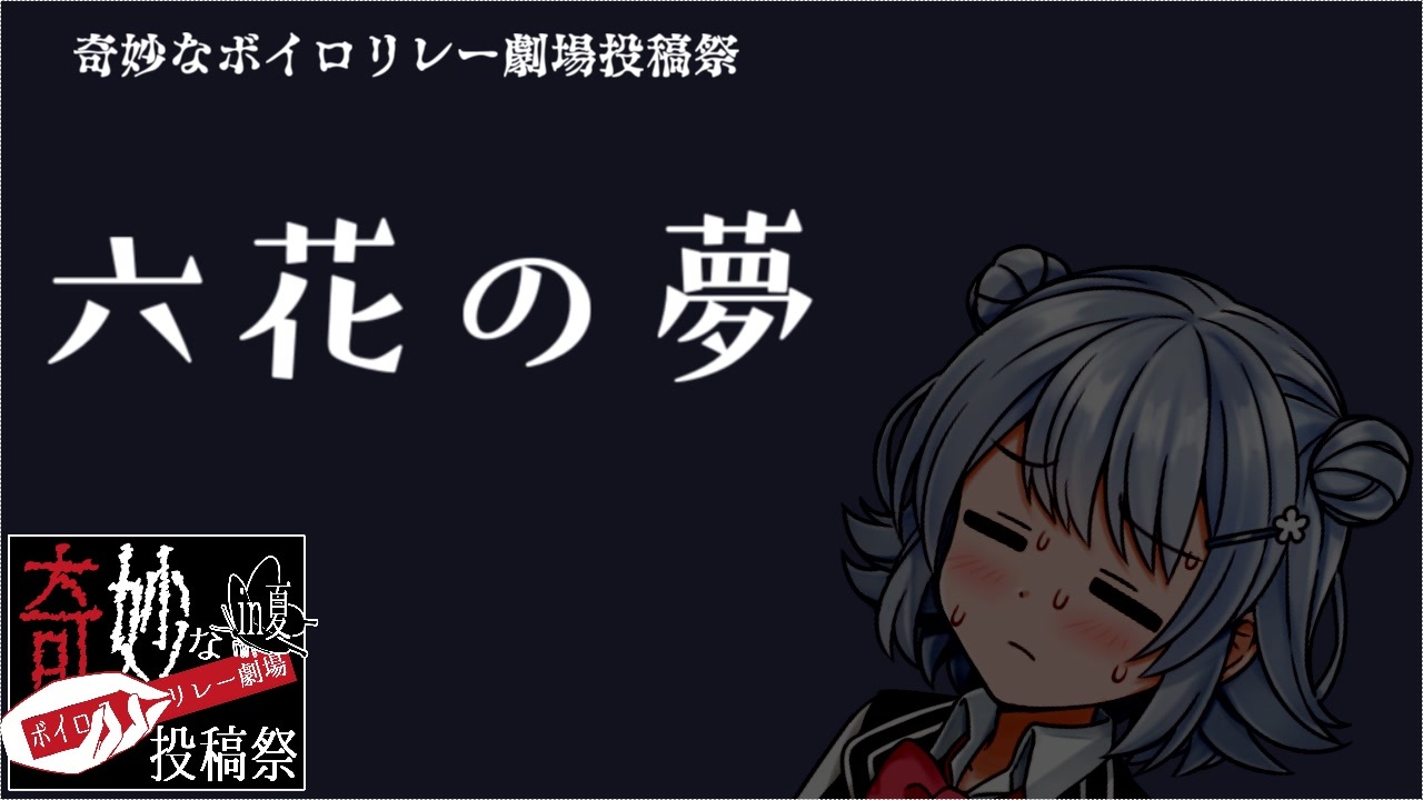 以前飼っていた犬が、寝ている時に足をバタバタと動かしていました。<br>きっと夢の中で駆け回っていたのでしょう。ほほえましい姿でした。<br>しかしその犬はもはや老いて、現実では到底駆け回ることなど叶いませんでした。<br>夢から覚めた時、犬は自らの現実をどう直視したのでしょうね。<br>そんなお話です。<span style="color: #ff0000;">(茜)</span><br><br>そんなお話…かなぁ?<span style="color: #00ffff;">(葵)</span><br><br>──────────────────────────────────────────────────<br> 【奇妙なボイロ劇場リレー投稿祭】<br>・本企画OP→<a href="https://www.nicovideo.jp/watch/sm40852067" class="watch">sm40852067</a><br><br>・七日目→<a href="https://www.nicovideo.jp/watch/sm40865121" class="watch">sm40865121</a>(kiAraさん)<br><br>・八日目→ここ<br><br>・九日目→<a href="https://www.nicovideo.jp/watch/sm40895963" class="watch">sm40895963</a>(さのさん)<br><br>・企画マイリスト→<a href="https://www.nicovideo.jp/mylist/73195945" target="_blank" rel="noopener">mylist/73195945</a><br><br>──────────────────────────────────────────────────<br><br>参加者の過去動画まとめ(普段はこういう動画作ってます)<br> →<a href="https://www.nicovideo.jp/mylist/73195953" target="_blank" rel="noopener">mylist/73195953</a><br>【リレー企画垢案内】<br>リレー企画Twitter垢→ <a href="https://twitter.com/voiceroidrelay" target="_blank" rel="noopener nofollow">https://twitter.com/voiceroidrelay</a><br>リレー企画ニコニコ垢→ <a href="https://www.nicovideo.jp/user/124494532" target="_blank" rel="noopener nofollow">https://www.nicovideo.jp/user/124494532</a><br><br><br>制作者Twitter <a href="https://twitter.com/ZangiUmaUma" target="_blank" rel="noopener nofollow">https://twitter.com/ZangiUmaUma</a> <br>YouTubeにも同時投稿してます<br><br>お借りした素材はコンテンツツリーに。<br>動画内の蝶の素材はるちぬるつさんから頂きました<br><br>普段作ってるもの<br>実況シリーズパート1→<a href="https://www.nicovideo.jp/watch/sm40481926" class="watch">sm40481926</a><br>野球解説パート1→<a href="https://www.nicovideo.jp/watch/sm39610831" class="watch">sm39610831</a><br>野球解説最新パート→<a href="https://www.nicovideo.jp/watch/sm40634469" class="watch">sm40634469</a><br>以下過去作<br>2020ファイターズVOICEROID実況プレイ→ <a href="https://www.nicovideo.jp/watch/sm38200220" class="watch">sm38200220</a><br>ファイターズ解説動画マイリスト <a href="https://www.nicovideo.jp/mylist/70881460" target="_blank" rel="noopener">mylist/70881460</a><br>野球のルール解説動画パート1→ <a href="https://www.nicovideo.jp/watch/sm39610831" class="watch">sm39610831</a>