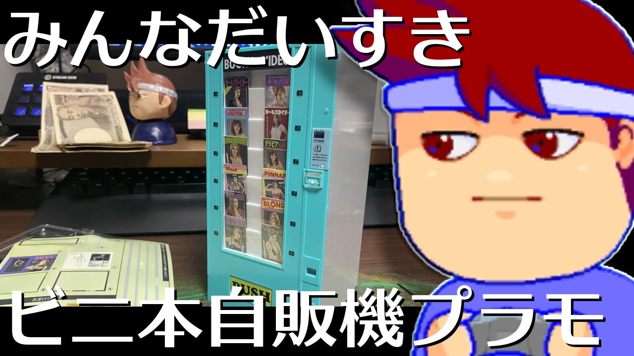 道具はニッパーとハサミでほぼ作れました。<br>細かいところのシール貼り付けに、針か細いマイナスドライバー的なものがあると便利かも。<br><br>ビニ本自販機プラモ<br><a href="https://amzn.to/3SoL5yI" target="_blank" rel="noopener nofollow">https://amzn.to/3SoL5yI</a><br><br /><br>◆◇◆◇<br>バーチャルいいゲーマー : <a href="https://www.nicovideo.jp/series/169043" target="_blank" rel="noopener">series/169043</a><br>バーチャルいいゲーマー2: <a href="https://www.nicovideo.jp/series/354647" target="_blank" rel="noopener">series/354647</a><br>バーチャルいいゲーマー3: <a href="https://www.nicovideo.jp/series/456136" target="_blank" rel="noopener">series/456136</a><br>バーチャルいいゲーマー4: <a href="https://www.nicovideo.jp/series/519895" target="_blank" rel="noopener">series/519895</a><br>バーチャルいいゲーマー5: <a href="https://www.nicovideo.jp/series/535323" target="_blank" rel="noopener">series/535323</a><br><br>いい道 : <a href="https://www.nicovideo.jp/series/34469" target="_blank" rel="noopener">series/34469</a><br>RTA動画パート1集 : <a href="https://www.nicovideo.jp/mylist/53648285" target="_blank" rel="noopener">mylist/53648285</a><br>◆◇◆◇<br><br><span style="color: #ff0000; font-size: 16px;"><strong>生放送(毎日19:10~)<br>今シーズンは……「ダンガンロンパ」ほかをプレイ中……。</strong></span><br><span style="color: #ff0000; font-size: 18px;"><strong>⇒ <a href="https://www.twitch.tv/usui_iigame" target="_blank" rel="noopener nofollow">https://www.twitch.tv/usui_iigame</a></strong></span><br><br><strong>★FanBox ⇒ <a href="https://usui-iigame.fanbox.cc/" target="_blank" rel="noopener nofollow">https://usui-iigame.fanbox.cc/</a></strong><br><br><span style="font-size: 10px;">Twitter(フォローしてね) ⇒ <a href="https://twitter.com/usui_iigame" target="_blank" rel="noopener nofollow">https://twitter.com/usui_iigame</a><br>Youtube(毎日19:00~世界最速プレミア配信)⇒ <a href="https://www.youtube.com/channel/UCyEph50XfHDSig0umxV4_lQ" target="_blank" rel="noopener nofollow">https://www.youtube.com/channel/UCyEph50XfHDSig0umxV4_lQ</a><br>攻略Wiki(非公式) ⇒ <a href="https://seesaawiki.jp/virtual-ii-gamer/" target="_blank" rel="noopener nofollow">https://seesaawiki.jp/virtual-ii-gamer/</a></span>