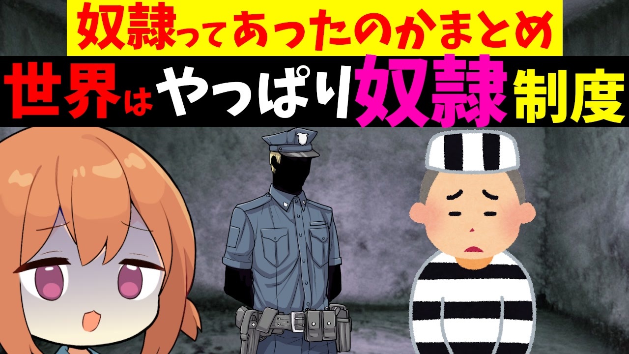 世界はやっぱり奴隷制度だったのかまとめをご紹介します。<br><br>4人に一人だよ<br>→そうですね。。<br><br>【使用素材】<br>illust AC <a href="https://www.ac-illust.com/" target="_blank" rel="noopener nofollow">https://www.ac-illust.com/</a><br>photo AC <a href="https://www.photo-ac.com/" target="_blank" rel="noopener nofollow">https://www.photo-ac.com/</a><br>Pixabay <a href="https://pixabay.com/ja/" target="_blank" rel="noopener nofollow">https://pixabay.com/ja/</a><br>いらすとや <a href="http://www.irasutoya.com/" target="_blank" rel="noopener nofollow">http://www.irasutoya.com/</a><br>空想曲線 <a href="https://kopacurve.blog.fc2.com/" target="_blank" rel="noopener nofollow">https://kopacurve.blog.fc2.com/</a><br><br>【使用BGM・効果音】<br>◆DOVA-SYNDROME<br><a href="http://dova-s.jp/" target="_blank" rel="noopener nofollow">http://dova-s.jp/</a><br>◆MusMus<br><a href="https://musmus.main.jp/info.html" target="_blank" rel="noopener nofollow">https://musmus.main.jp/info.html</a><br>◆効果音ラボ<br><a href="https://soundeffect-lab.info/" target="_blank" rel="noopener nofollow">https://soundeffect-lab.info/</a><br>◆効果音:ポケットサウンド –<br>ボ色Ckcmg8yBpJk5I1fwu0sabJg<br>◆創作堂さくら紅葉