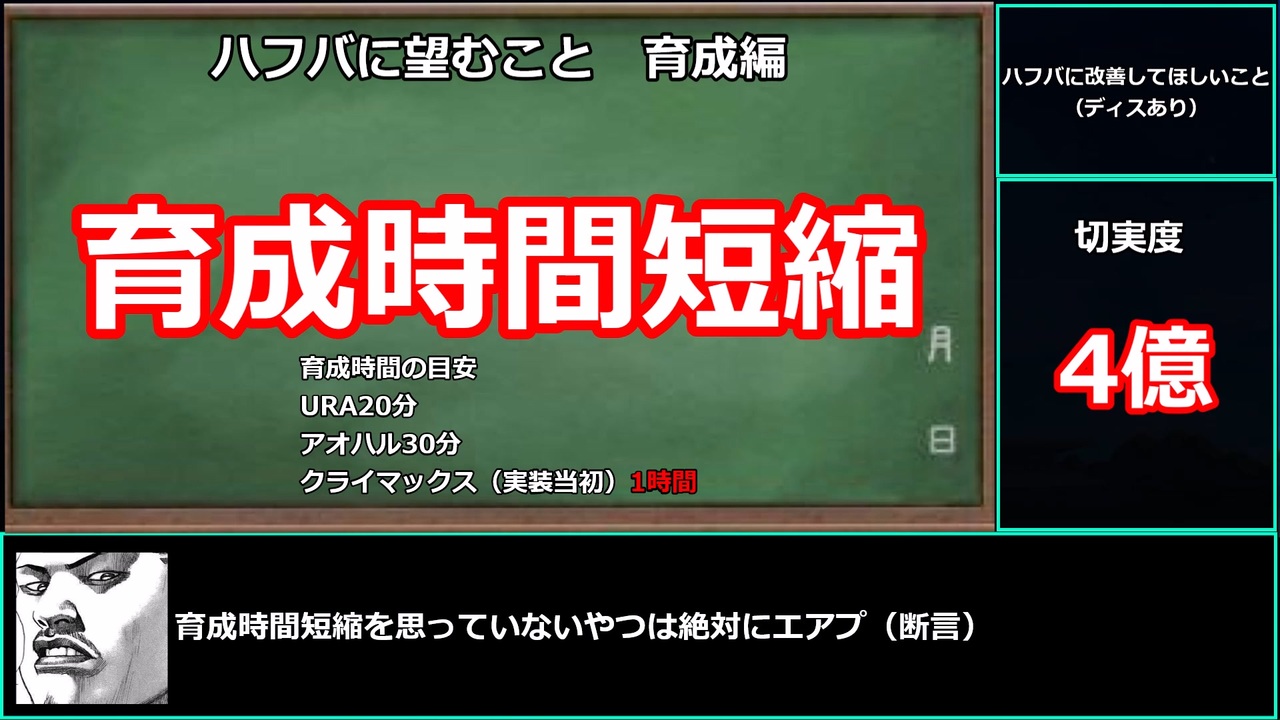データ詳細 【ゆっくりウマ娘】ハフバで改善してほしいとこを紹介していたらだんだん不満が出てくる動画(ディスあり)【biimシステム】