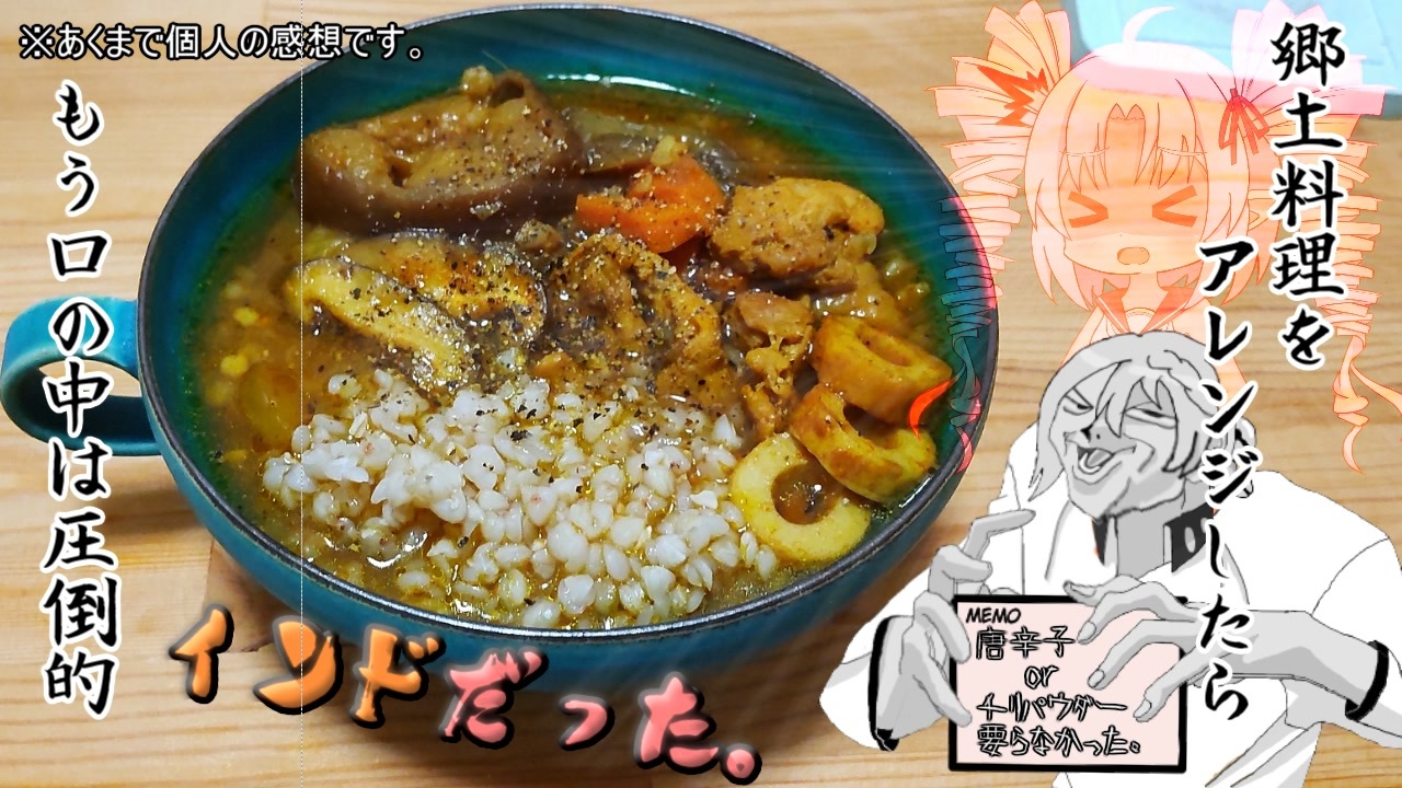 <span style="font-size: 24px;">「第三回スパイス祭」告知動画ッ!!! </span><span style="font-size: 24px;"><strong><a href="https://www.nicovideo.jp/watch/sm40625799" class="watch">sm40625799</a></strong></span><br><span style="font-size: 24px;">主催:シャル様 </span><span style="font-size: 24px;"><strong><a href="https://www.nicovideo.jp/user/97437895" target="_blank" rel="noopener">user/97437895</a></strong></span><br><br>アレンジした料理<br>徳島県三好市祖谷を中心に県内全域で伝承される「そば米汁」です。<br><br>材料<br>〇鶏もも肉・・・1ブロック 〇ニンジン・・・1本 〇玉ねぎ・・・1/2個 〇シイタケ・・・2つ<br>〇ナス・・・・・1本 〇チクワ大明神・・・2~3本 〇蕎麦の実・・・100~150g<br>〇水・・・700ml 〇昆布茶(顆粒)・・・10g 〇白だし・・・100ml<br><strong><i><u>レギュレーションのスパイス↓</u></i></strong><br>●ニンニク(チューブ)、生姜(チューブ)・・・・・・・・・・・・・・・・・各大さじ2<br>●クミン、クローブ、ターメリック、コリアンダー、シナモン(パウダー)・・・各小さじ2<br>●ローレル(ホール)・・・・・・・・・・・・・・・・・・・・・・・・・・・・2枚<br><br>●チリパウダー(任意)・・・小さじ1 ●唐辛子(鷹の爪 任意で)・・・1本<br>●オリーブオイル・・・・・・適量<br><br>今回お借りしたBGM「アホの子」↓<br><a href="https://www.youtube.com/watch?v=A9UNXsCpCt0&list=PLMEtIOReYv7RMNcagUvWTAVuoQDkw4HW8&index=8" target="_blank" rel="noopener nofollow">https://www.youtube.com/watch?v=A9UNXsCpCt0&list=PLMEtIOReYv7RMNcagUvWTAVuoQDkw4HW8&index=8</a><br /><br><strong><u>その他、使用素材はニコニ・コモンズ コンテンツツリーをご参考ください。</u></strong><br>よくお借りする素材提供様<br>・いらすとや 様 <a href="https://www.irasutoya.com/" target="_blank" rel="noopener nofollow">https://www.irasutoya.com/</a> ・free Photo 様 <a href="http://free-photo.net/" target="_blank" rel="noopener nofollow">http://free-photo.net/</a><br>・効果音ラボ 様 <a href="https://soundeffect-lab.info/" target="_blank" rel="noopener nofollow">https://soundeffect-lab.info/</a> ・On-Jin音人 様 <a href="https://on-jin.com/" target="_blank" rel="noopener nofollow">https://on-jin.com/</a><br><br><a target="_blank" href="https://qa.nicovideo.jp/faq/show/19424?site_domain=default" style="font-size: 13px;color: #657586; text-decoration: underline; line-height: 1.4">この動画は投稿者によって修正されました</a>