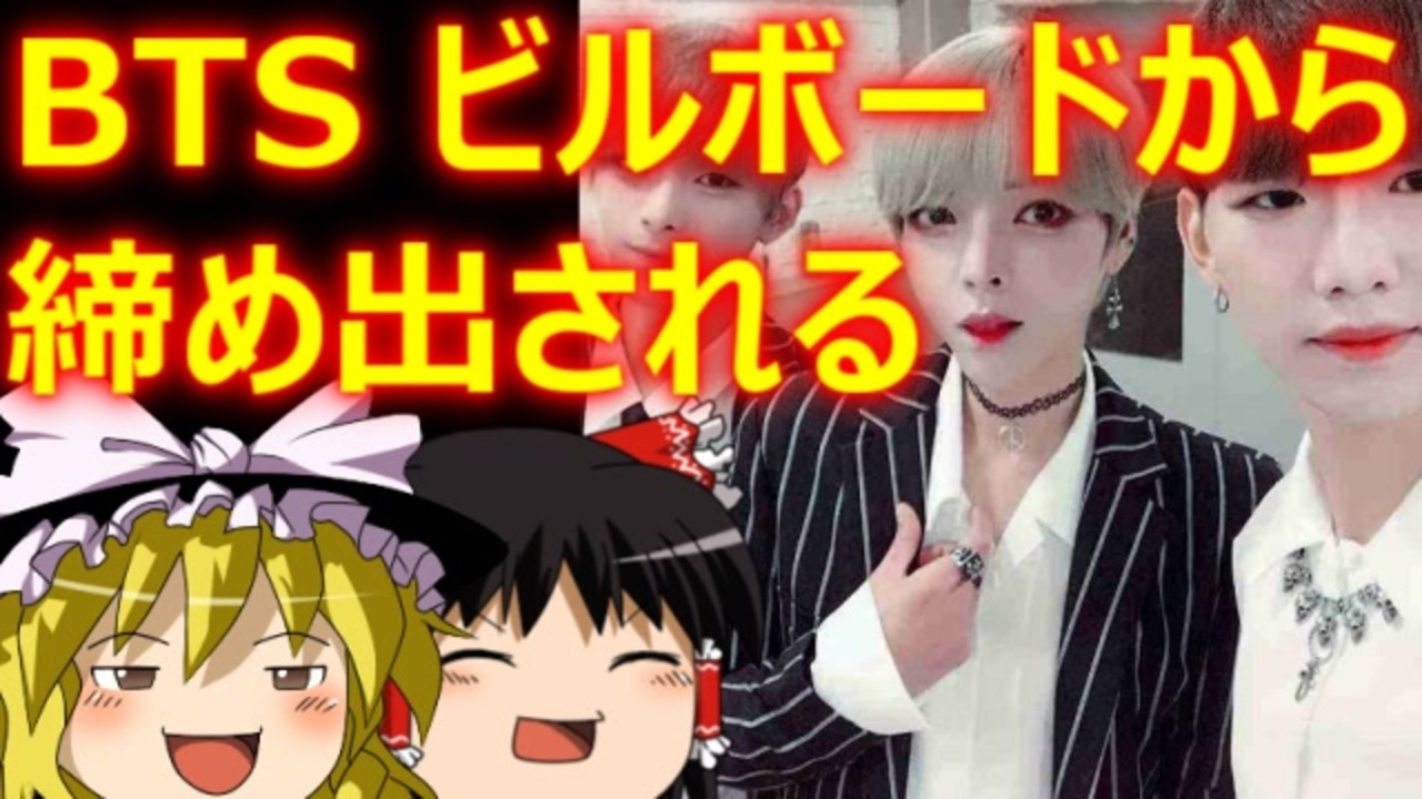 超人気のK-POPアイドルグループBTSが、全米ビルボードから忽然と姿を消した!<br>おかしいニダ!差別ニダ!劣等感ニダ!<br>【関連動画】<br>看板を撤去されちゃう:<a href="https://www.nicovideo.jp/watch/sm39290710" class="watch">sm39290710</a><br>世界からバカにされちゃう:<a href="https://www.nicovideo.jp/watch/sm40285914" class="watch">sm40285914</a><br><br><br>YouTube上のセーフな話チャンネル<br><a href="https://www.youtube.com/channel/UCjSNLMlaGwq9C1BafK0vh9w" target="_blank" rel="noopener nofollow">https://www.youtube.com/channel/UCjSNLMlaGwq9C1BafK0vh9w</a><br><br>YouTube上のサブチャンネル<br><a href="https://www.youtube.com/channel/UCLB3-9hl2H4h1drSThv0y-A" target="_blank" rel="noopener nofollow">https://www.youtube.com/channel/UCLB3-9hl2H4h1drSThv0y-A</a><br><br>Rumble上のサブチャンネル<br><a href="https://rumble.com/user/Saku" target="_blank" rel="noopener nofollow">https://rumble.com/user/Saku</a><br><br>ニコニコ動画上の他のシリーズも宜しくね。<br><a href="https://www.nicovideo.jp/user/81752108/series" target="_blank" rel="noopener nofollow">https://www.nicovideo.jp/user/81752108/series</a><br>