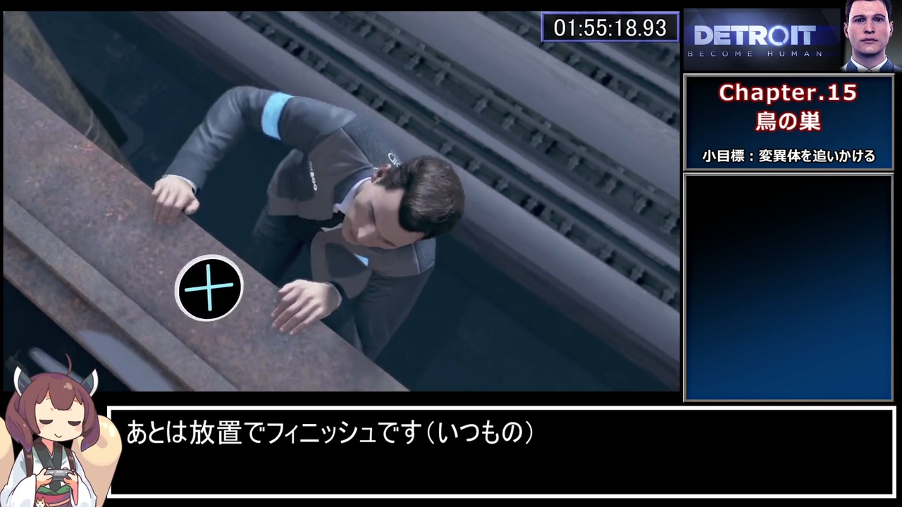 <a href="#" class="seekTime" data-seekTime="6:57" onclick="seekNicoPlayer('#6:57'); return false;">#6:57</a> の「成功」は「失敗」の誤りです。<br>野獣の日に間に合ったゾー<br><br>Chapter.15開始~Chapter.16終了まで<br><br><a href="https://www.nicovideo.jp/watch/sm40878844" class="watch">sm40878844</a>←前|<a href="https://www.nicovideo.jp/mylist/73392456" target="_blank" rel="noopener">mylist/73392456</a>|次→ <a href="https://www.nicovideo.jp/watch/sm40919779" class="watch">sm40919779</a><br><br>RTA part1集 <a href="https://www.nicovideo.jp/mylist/71936684" target="_blank" rel="noopener">mylist/71936684</a><br>進捗報告とか <a href="https://twitter.com/KemotooooN_RTA" target="_blank" rel="noopener nofollow">https://twitter.com/KemotooooN_RTA</a><br><br>※本動画シリーズでは、東北ずん子公式様が配布しているイラストを使用しております。<br> 東北ずん子のイラスト/3Dデータ - <a href="https://zunko.jp/con_illust.html" target="_blank" rel="noopener nofollow">https://zunko.jp/con_illust.html</a><br><br><strong><u>▼プレイ環境</u></strong><br>・本体(実機):PS4(Not Pro/SSD換装なし)<br>・コントローラ:付属のやつ<br>・ゲーム:ダウンロード版<br><br><strong><u>▼レギュレーション/縛り等</u></strong><br>・計測開始:CHAPTERから『人質』を選択し、ロードが完了した瞬間<br>・計測終了:30話の選択肢『走る』を選択したのち、メインメニューに戻り表示された瞬間