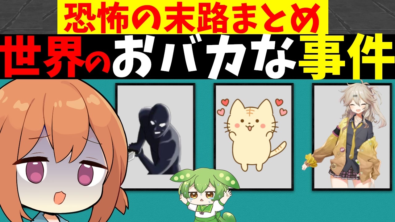 世界のおバカな事件です。おバカなことをした結果、悲惨なことが起きた事件についてのまとめをご紹介します。<br><br>※うぷ主とお姉ちゃんは性格違うのよ。<br><br>【コメントお返し】<br>お姉ちゃんとカナちゃん描いていい?<br>→いろんなところで、商用や自分の作品のようにして使わなければ描いていいですよ<br><br>ファンアートであればokです。<br>※逆にファンアート以外はNGです。<br><br>過去にありましたがファンアートだったら絵師さんに見せて問題ありませんでした。<br><br><br>【使用素材】<br>illust AC <a href="https://www.ac-illust.com/" target="_blank" rel="noopener nofollow">https://www.ac-illust.com/</a><br>photo AC <a href="https://www.photo-ac.com/" target="_blank" rel="noopener nofollow">https://www.photo-ac.com/</a><br>Pixabay <a href="https://pixabay.com/ja/" target="_blank" rel="noopener nofollow">https://pixabay.com/ja/</a><br>いらすとや <a href="http://www.irasutoya.com/" target="_blank" rel="noopener nofollow">http://www.irasutoya.com/</a><br>空想曲線 <a href="https://kopacurve.blog.fc2.com/" target="_blank" rel="noopener nofollow">https://kopacurve.blog.fc2.com/</a><br><br>【使用BGM・効果音】<br>◆DOVA-SYNDROME<br><a href="http://dova-s.jp/" target="_blank" rel="noopener nofollow">http://dova-s.jp/</a><br>◆MusMus<br><a href="https://musmus.main.jp/info.html" target="_blank" rel="noopener nofollow">https://musmus.main.jp/info.html</a><br>◆効果音ラボ<br><a href="https://soundeffect-lab.info/" target="_blank" rel="noopener nofollow">https://soundeffect-lab.info/</a><br>◆効果音:ポケットサウンド –<br>ボ色Ckcmg8yBpJk5I1fwu0sabJg<br>◆創作堂さくら紅葉<br><br><br><a target="_blank" href="https://qa.nicovideo.jp/faq/show/19424?site_domain=default" style="font-size: 13px;color: #657586; text-decoration: underline; line-height: 1.4">この動画は投稿者によって修正されました</a>