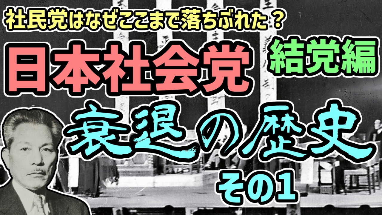 今シリーズでは「なぜ社会党は衰退してしまったのか」、衰退という負の面から見た日本社会党の歴史を解説します。<br>今回は日本社会党の結党から1960年に入るくらいまで。<br>ちなみに今回はイントロダクションで次回がメインとなります。<br>あと試験的にゆっくりボイスの速度を100から95に落としてみました。<br><br>次回:<a href="https://www.nicovideo.jp/watch/sm41017678" class="watch">sm41017678</a><br>マイリスト:<a href="https://www.nicovideo.jp/mylist/73590554" target="_blank" rel="noopener">mylist/73590554</a><br><br>ご意見・ご感想・ご要望があればぜひコメントしてください。<br>内容の都合上かなり端折ってますがご了承ください。<br><br>ついったー <a href="https://twitter.com/youz26400114" target="_blank" rel="noopener nofollow">https://twitter.com/youz26400114</a><br><br>欲しいものリスト <a href="https://www.amazon.co.jp/hz/wishlist/ls/26SYYFRSTGV7Y/" target="_blank" rel="noopener nofollow">https://www.amazon.co.jp/hz/wishlist/ls/26SYYFRSTGV7Y/</a>