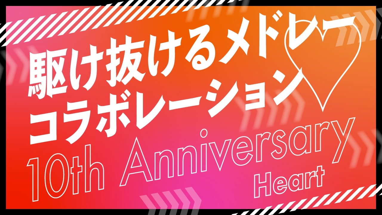 <span style="color: #ff0000; font-size: 24px;"><strong>10周年ありがとうございます!</strong></span><br><br><span style="color: #ff0000;"><strong>原曲再現→<a href="https://www.nicovideo.jp/series/415164" target="_blank" rel="noopener">series/415164</a></strong></span><br><br>最終回を迎えたあの「駆け抜ける」合作が、シリーズ10周年を記念して一夜限りの復活!<br>総勢47組の作者がメドレーでも動画でも個性を発揮します!<br>いつもどおり"何でもアリ"なメドレーなので、不快に思われる方は直ちに視聴を中止してください!<br><br>YouTube→<a href="https://youtu.be/-sYk7enw4FU" target="_blank" rel="noopener nofollow">https://youtu.be/-sYk7enw4FU</a><br><br>参加者一覧(敬称略)<br>主催、マスタリング:銀河P<br>音源監修:Ketoku、なわ、記事口授<br>構成:FullKen<br>動画まとめ:Ketoku<br>ロゴ、サムネイル:向坂<br>メドレー製作:<br>タダより高いモノは無い<br>ミラ<br>マイメロとファゴットと、ワッフルと発酵レモンサワー<br>弗素<br>アヤメネ/<br>りかにあ<br>毒ガスwith熱き決闘者たち<br>水色サーモン<br>獅子座じゃない人<br>匿☆名<br>帽子の娘<br>まるく