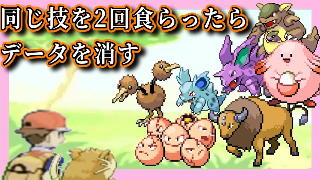 ノーカット版→<a href="https://www.youtube.com/channel/UCZpP0UTNYyY7Swh7klqBohg" target="_blank" rel="noopener nofollow">https://www.youtube.com/channel/UCZpP0UTNYyY7Swh7klqBohg</a><br><br>前→<a href="https://www.nicovideo.jp/watch/sm40899552" class="watch">sm40899552</a><br>レベル上げ中の雑談→<a href="https://www.nicovideo.jp/watch/sm40556138" class="watch">sm40556138</a>・<a href="https://www.nicovideo.jp/watch/sm40556138" class="watch">sm40556138</a><br>次→地獄のキョウ編(配信にて生収録)<br><br><br>【ルール】<br>・同じ技を2回受けたらデータ削除<br>・受けた技は全ポケモン共通<br>・「当たる」技のみを対象とする<br>(外れた場合はカウントしない)<br><br>・自己強化技(かたくなる等)は含まれない<br>・天候技(あまごい)は含まれない<br>・複数攻撃技(タネマシンガン等)は1セットで1回とする<br>・溜め技(ソーラービーム等)は 技が当たったタイミングで1回とする<br>・特性は含まれない<br><br>(例)<br>・たいあたり:2回当たればOUT<br>・なきごえ:2回当たればOUT<br>・さいみんじゅつ:2回当たればOUT<br>・かたくなる:何度使われても問題ない<br>・タネマシンガン:「4回当たった!」⇒1回目なのでSAFE、「3回当たった!」⇒2回目なのでOUT<br>・ソーラービーム:溜めている状態ではカウントしない、技が当たれば1回<br>・のろい(ゴーストタイプの場合)⇒2回当たればOUT<br>・のろい(その他タイプの場合)⇒何度使われても問題ない<br><br><span style="color: #ff0000; font-size: 18px;"><strong>その他、書いてないことは随時追記していきます。<br>判断は全て私がします!</strong></span><br><br>【ツイッター】<a href="https://twitter.com/masa1225kami" target="_blank" rel="noopener nofollow">https://twitter.com/masa1225kami</a> <br><br>【ニコニコ】<a href="http://www.nicovideo.jp/user/36246593" target="_blank" rel="noopener nofollow">http://www.nicovideo.jp/user/36246593</a><br>