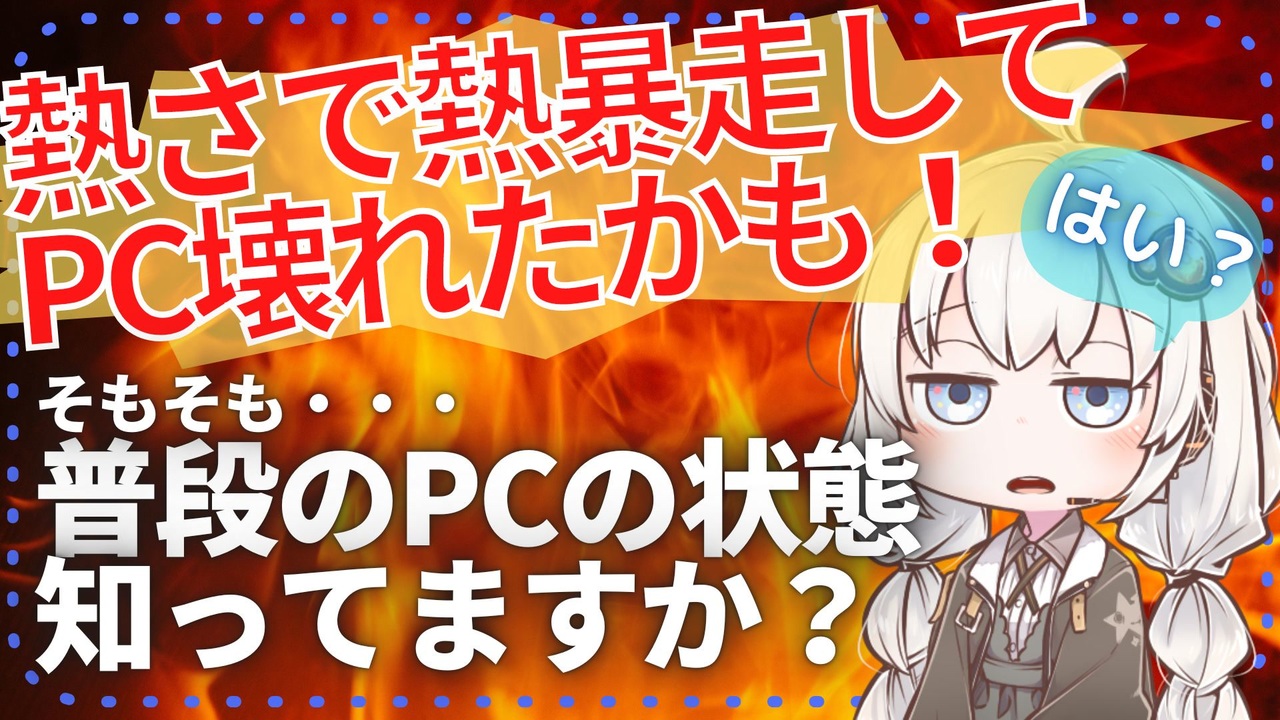 パソコンの心配をするなら普段の状態を知っていないとね。<br><br>動画内で紹介したOpen Hardwere Monitorの使い方を書いたブログ<br><a href="https://da-san.work/pc-temperature-hardwermonitor/" target="_blank" rel="noopener nofollow">https://da-san.work/pc-temperature-hardwermonitor/</a><br><br>ろむてる単発解説マイリスト<br><a href="https://www.nicovideo.jp/mylist/72336437" target="_blank" rel="noopener">mylist/72336437</a><br><br />ろむてるの各シリーズの動画マイリスト<br><a href="https://www.nicovideo.jp/mylist/72336572" target="_blank" rel="noopener">mylist/72336572</a><br><br>ろむてるYoutubeチャンネル↓<br><a href="https://www.youtube.com/channel/UCAj8wqPqMZdAxpURAT_rSxg" target="_blank" rel="noopener nofollow">https://www.youtube.com/channel/UCAj8wqPqMZdAxpURAT_rSxg</a><br><br>Twitter本アカ - <a href="https://twitter.com/Da_project" target="_blank" rel="noopener nofollow">https://twitter.com/Da_project</a><br>Bluesky - <a href="https://bsky.app/profile/da-romtell.com" target="_blank" rel="noopener nofollow">https://bsky.app/profile/da-romtell.com</a><br>ブログ - <a href="https://da-romtell.com/" target="_blank" rel="noopener nofollow">https://da-romtell.com/</a>
