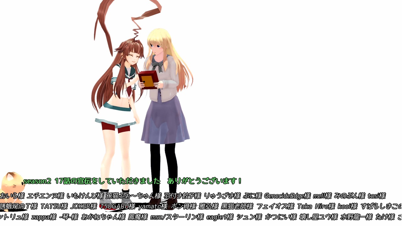 こんにちわこんばんわ 私です<br>ようやく投稿出来ました~。今後はこんな感じで間の空いた間隔<br>投稿をしていこうと考えています。(疾走扱いにならない感じで)<br>細かいこと抜きにしてできればいいんです。(`・ω・´)<br><br>間隔が空いてしまうので前回のお話がわからねぇよ。<br>って方もいると思いますので、その場合は前回のを見直ししていただけると<br>幸いです。<br><br>あと動画シーズン2になってからですが、アクセサリーの方で<br>配布停止及び使用禁止になってしまっていたモデルがありました。<br>伽弥ノ芥様が製作した 結い髪のアクセサリーモデル です。<br>こちらは利用規約にシリーズ通しての記載がありましたので、利用させていただいています。<br>製作者様のご好意に甘えてお借りしています。<br><br>以上となりますが、毎度の如くのんびりまったりやって<br>これからも投稿していきますので、お付き合いしていただけると幸いです。<br><br><br>自己満足時代 のマイリスト <a href="https://www.nicovideo.jp/mylist/45434556" target="_blank" rel="noopener">mylist/45434556</a><br>season 1 のマイリスト <a href="https://www.nicovideo.jp/mylist/49317857" target="_blank" rel="noopener">mylist/49317857</a><br>season 2 のマイリスト <a href="https://www.nicovideo.jp/mylist/67526241" target="_blank" rel="noopener">mylist/67526241</a><br> <br>season2 のシリーズ <a href="https://www.nicovideo.jp/series/93923" target="_blank" rel="noopener">series/93923</a><br><br>前回のお話<a href="https://www.nicovideo.jp/watch/sm40457818" class="watch">sm40457818</a> 次回 2024 5月21日 この年のGWから制作を再開しました。2024年以内に二本はあげます。ケジメとして多摩編は終わらせないと皆様に示しがつかない!!!!!!