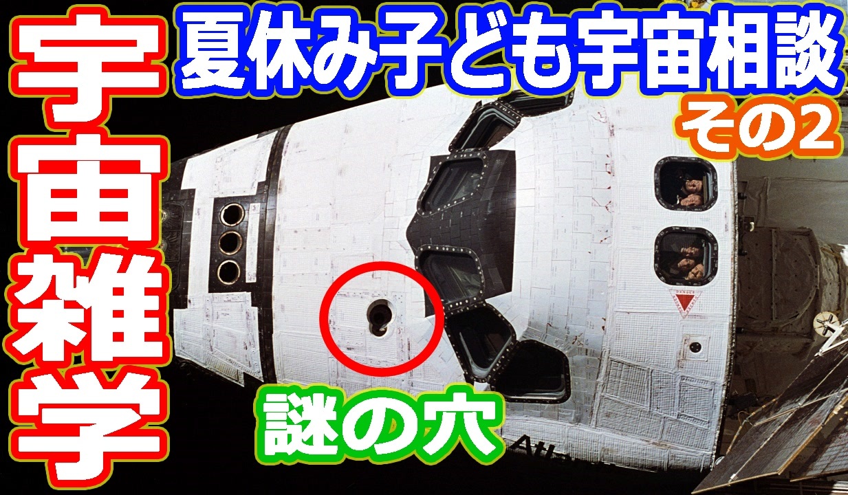 今年もやります子ども宇宙相談<br>先月から募集していた宇宙の疑問に答えていきます<br>船外活動服を着てる時におならをするとずっと臭いの?<br>国際宇宙ステーションで喧嘩とかするの?<br>宇宙食にサプリメントがない理由は?<br>スペースシャトルが背面飛行をする3つの理由<br>スペースシャトルに開いた謎の穴の正体<br><br>【欲しいものリスト】<br><a href="https://www.amazon.jp/hz/wishlist/ls/30HG3KS6HM6G?ref_=wl_share" target="_blank" rel="noopener nofollow">https://www.amazon.jp/hz/wishlist/ls/30HG3KS6HM6G?ref_=wl_share</a><br>【いちおし宇宙系】<br>・アマゾンリンク<br><a href="https://amzn.to/2S8xjpH" target="_blank" rel="noopener nofollow">https://amzn.to/2S8xjpH</a><br>・こども実験教室宇宙を飛ぶスゴイ技術<br>kindle版<br><a href="https://amzn.to/3qLSZ9j" target="_blank" rel="noopener nofollow">https://amzn.to/3qLSZ9j</a><br>書籍版<br><a href="https://amzn.to/3NtSavw" target="_blank" rel="noopener nofollow">https://amzn.to/3NtSavw</a><br>・宇宙兄弟(39)<br>kindle版<br><a href="https://amzn.to/3NvA0JL" target="_blank" rel="noopener nofollow">https://amzn.to/3NvA0JL</a><br>書籍版<br><a href="https://amzn.to/3iLSbg7" target="_blank" rel="noopener nofollow">https://amzn.to/3iLSbg7</a><br>・眠れなくなるほど面白い 図解 宇宙の話 <br>kindle版<br><a href="https://amzn.to/3ISW7Gq" target="_blank" rel="noopener nofollow">https://amzn.to/3ISW7Gq</a><br>書籍版<br><a href="https://amzn.to/3NzPzQT" target="_blank" rel="noopener nofollow">https://amzn.to/3NzPzQT</a><br><br>公平性や中立性を考えてアフィリエイトリンクは控えていましたが、得た収益を次のレビュー書籍や機材代にするために始めました<br>よろしくお願いします<br><br>へえ~と思ったらチャンネル登録と高評価をお願います<br>ツイッターでは、たまに宇宙ネタをつぶやいています<br><br>◆チャンネル登録はこちら<br><a href="http://www.youtube.com/channel/UChOv-TZWg3X4MDjFUF8CfQg?sub_confirmation=1" target="_blank" rel="noopener nofollow">http://www.youtube.com/channel/UChOv-TZWg3X4MDjFUF8CfQg?sub_confirmation=1</a><br>◆サブチャンネル<br><a href="http://www.youtube.com/channel/UCpQEOLtOpmXUwslvgi93yQw?sub_confirmation=1" target="_blank" rel="noopener nofollow">http://www.youtube.com/channel/UCpQEOLtOpmXUwslvgi93yQw?sub_confirmation=1</a><br>◆twitterはこちら<br><a href="https://twitter.com/skysanpei" target="_blank" rel="noopener nofollow">https://twitter.com/skysanpei</a>