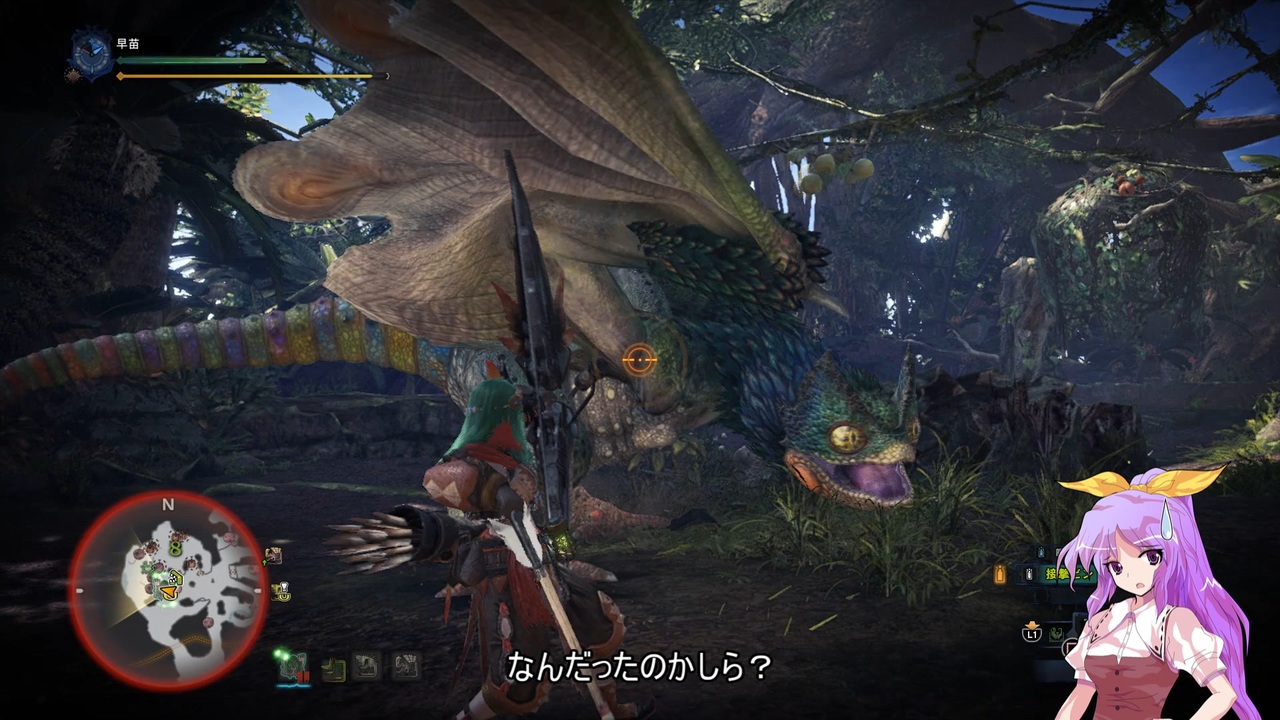 第二話目狩猟開始です。<br><br>今回、少しキャラ画像大きくしてみました。<br>代わりにアイテムが見えなくなりましたが、どうでしょうか?<br>よろしければ前回とどちらが良いかコメントを頂けると助かります。<br><br>尚、受付嬢の相棒こと本来のハンターですが、<br>本来(プレイヤー操作のハンター)よりも能力劣ってる設定です。<br>勿論、無能ということはなく優秀な部類ですが、<br>本来の化け物じみたハンターならそもそも旦那呼ばれませんので。<br>そういう設定で行きますので、ご了承ください。<br><br>後、オトモは上位まで封印します。<br>今回はオトモは一匹しか用意できず、また、これまでのプレイでレベルが上がってて<br>そのまま投入すると下位ではヌルゲーになり過ぎるためです。<br>こちらもご了承ください。<br><br>次><a href="https://www.nicovideo.jp/watch/sm40967332" class="watch">sm40967332</a><br>前><a href="https://www.nicovideo.jp/watch/sm40967120" class="watch">sm40967120</a><br>マイリスト><a href="https://www.nicovideo.jp/mylist/73584942" target="_blank" rel="noopener">mylist/73584942</a><br>過去作><a href="https://www.nicovideo.jp/mylist/48033638" target="_blank" rel="noopener">mylist/48033638</a>