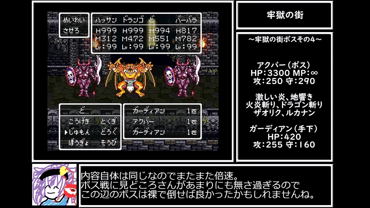 ドグマの瞳なんかに絶対負けないんだから!<br><br>※ネタバレ要素はあります。<br><br>【動画内容】<br>・欲望の街~牢獄の街解決まで<br><br> <br> <a href="https://www.nicovideo.jp/watch/sm40676003" class="watch">sm40676003</a> ←前 次→ <a href="https://www.nicovideo.jp/watch/sm41090737" class="watch">sm41090737</a><br><br><strong>※データ損失を避けるため、レトロフリークを使用してプレイしております。<br>当たり前ですが改造・チート等は使いません。</strong><br>(そもそも初期設定のままだと使えません!安心!)<br><br><span style="font-size: 16px;"><strong><u>本シリーズのプレイ内容</u></strong></span><br><span style="font-size: 16px;"><strong>1.アイテムコンプリート(モンスタードロップもコンプ)<br>2.一部を除く仲間モンスターを3匹コンプリート<br>3.全仲間キャラの職業・レベルをMAX<br>4.失踪しない</strong></span><br><br>主に上記4つですが他にも色々やろうと考えております。<br><br>この動画で利用している株式会社スクウェア・エニックスを代表とする共同著作者が権利を所有する著作物及びスギヤマ工房有限会社が権利を所有する楽曲の転載・配布は禁止いたします。<br>© 1995 ARMOR PROJECT/BIRD STUDIO/HEART BEAT/SQUARE ENIX All Rights Reserved.<br>© SUGIYAMA KOBO<br>© Square Enix<br>─────────────────────────────<br>Youtube版 → <a href="https://youtu.be/X0rFrwQ2FAU" target="_blank" rel="noopener nofollow">https://youtu.be/X0rFrwQ2FAU</a><br>Youtubeチャンネル → <a href="https://www.youtube.com/channel/UCEeOoDzkZH39MbtPwS_OPPQ" target="_blank" rel="noopener nofollow">https://www.youtube.com/channel/UCEeOoDzkZH39MbtPwS_OPPQ</a><br>Twitter → <a href="https://twitter.com/donko_di" target="_blank" rel="noopener nofollow">https://twitter.com/donko_di</a><br>ニコニコ → <a href="https://www.nicovideo.jp/user/32779057" target="_blank" rel="noopener nofollow">https://www.nicovideo.jp/user/32779057</a>