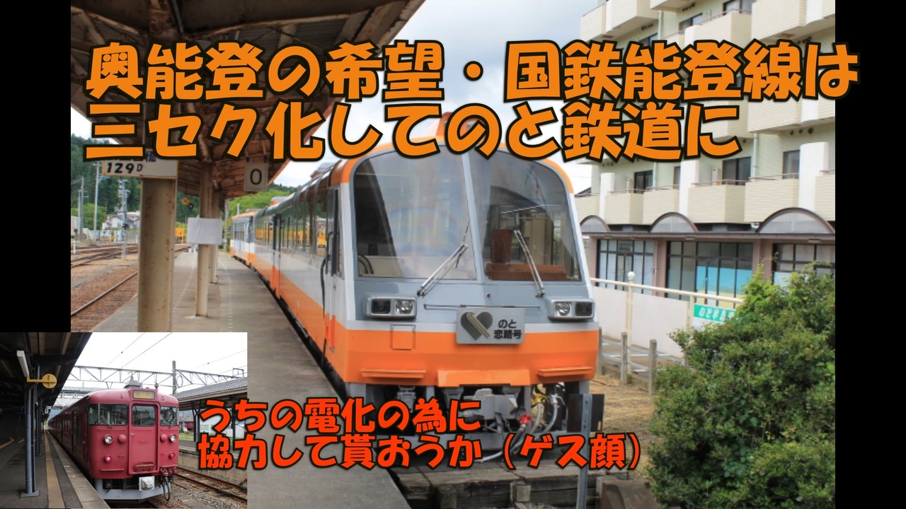 大変長らくお待たせしました。1年半ぶりの交通機関の栄枯盛衰でございます。<br><br>・・・いや、本当ほったらかしにし過ぎてすみません。全部ダグラスが悪いんや!(唐突な責任転嫁)<br><br>今回ご紹介するのは石川県の第三セクター・のと鉄道。その中でも設立理由となった能登線を中心にご紹介します。能登線の計画自体は戦前からありましたが、予算不足や戦争などの理由で結局全線開通したのは戦後しばらく経ってから。開業当初こそ能登半島の観光ブームで上々の滑り出しだったものの、ブーム終了で典型的な赤字ローカル線に転落し、特定地方交通線の対象に。<br>しかし、石川県は能登線を存続させるために早期の第三セクター化を打ち出して存続を決め、開業当初ののと鉄道も黒字経営となるなど好調なスタートを切りました。しかし・・・<br /><span style="color: #000000; font-size: 14px;">迷航空会社列伝</span><span style="color: #006699; font-size: 14px;"><a href="https://www.nicovideo.jp/mylist/24098760" target="_blank" rel="noopener">mylist/24098760</a></span><span style="color: #000000; font-size: 14px;"> 迷列車北陸編</span><span style="color: #006699; font-size: 14px;"><a href="https://www.nicovideo.jp/mylist/19084652" target="_blank" rel="noopener">mylist/19084652</a> </span><span style="color: #000000; font-size: 14px;">東海道交通戦争</span><span style="color: #006699; font-size: 14px;"><a href="https://www.nicovideo.jp/mylist/57958388" target="_blank" rel="noopener">mylist/57958388</a></span><span style="color: #000000; font-size: 14px;"> 交通機関の栄枯盛衰 </span><a href="https://www.nicovideo.jp/mylist/66898301" target="_blank" rel="noopener">mylist/66898301</a><br><span style="color: #000000; font-size: 14px;">ブログ→</span><span style="color: #006699; font-size: 14px;"><a href="http://www.meihokuriku-alps.com" target="_blank" rel="noopener nofollow">http://www.meihokuriku-alps.com</a></span><br>note→<a href="https://note.com/meihokuriku" target="_blank" rel="noopener nofollow">https://note.com/meihokuriku</a><br><span style="color: #000000; font-size: 14px;">使用BGM<br>甘茶の音楽工房様 </span><span style="color: #006699; font-size: 14px;"><a href="http://amachamusic.chagasi.com/index.html" target="_blank" rel="noopener nofollow">http://amachamusic.chagasi.com/index.html</a></span><br><span style="color: #000000; font-size: 14px;">魔王魂様 </span><span style="color: #006699; font-size: 14px;"><a href="https://maoudamashii.jokersounds.com/list/bgm5.html" target="_blank" rel="noopener nofollow">https://maoudamashii.jokersounds.com/list/bgm5.html</a></span>