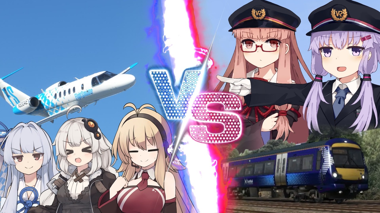 乗り物レースぽいことをしたかった動画。<br>キャプマキフライトログ#1( <a href="https://www.nicovideo.jp/watch/sm40740178" class="watch">sm40740178</a> )から続く形になります。<br><br>葵ちゃんの思い付きでレースをすることに。<br>鉄道組は"Class 170気動車"に<br>飛行機組は高速で移動できる小型ジェット機"サイテーションCJ4"に乗り、エディンバラの空港・駅を目指す。<br>それぞれに設定された目的地にいち早く到着するのはどちらか。<br><br>マキ視点:<a href="https://www.nicovideo.jp/watch/sm41048312" class="watch">sm41048312</a><br>ゆかり視点:<a href="https://www.nicovideo.jp/watch/sm41097141" class="watch">sm41097141</a><br>------------------<br>☆ 遊んだゲーム①:『Microsoft Flight Simulator』<br><a href="https://store.steampowered.com/app/1250410/Microsoft_Flight_Simulator_Game_of_the_Year_Edition/" target="_blank" rel="noopener nofollow">https://store.steampowered.com/app/1250410/Microsoft_Flight_Simulator_Game_of_the_Year_Edition/</a><br>※エアクラフトダメージ設定ONでプレイ<br><br>☆ 遊んだゲーム②:『Train Simulator Classic』<br><a href="https://store.steampowered.com/app/24010/Train_Simulator_Classic/" target="_blank" rel="noopener nofollow">https://store.steampowered.com/app/24010/Train_Simulator_Classic/</a><br>『Train Simulator: Edinburgh-Glasgow Route Add-On』<br><a href="https://store.steampowered.com/app/65216/Train_Simulator_EdinburghGlasgow_Route_AddOn/" target="_blank" rel="noopener nofollow">https://store.steampowered.com/app/65216/Train_Simulator_EdinburghGlasgow_Route_AddOn/</a><br><br>☆ 使用機材<br>飛行機:Cessna Citation CJ4<br>列 車:Class170 DMU ScotRail<br>☆ mods<br>WorkingTitleCJ4(CJ4改良mod)<br>Flight Recorder(リプレイmod)<br>☆ フライトプラン<br>EGPF/23 CLYDE3A CLYDE-GOW-STIRA-EDN-EGPH/24<br>Simbrief.comでプラン作成<br>------------------<br><br>葵ちゃんがメインの海難救助ゲームで好き勝手やるシリーズ<br><a href="https://www.nicovideo.jp/series/126180" target="_blank" rel="noopener">series/126180</a><br><br>ゆかりさんが運転しながら電車のあれがスキこれがスキをひたすら語るシリーズ<br><a href="https://www.nicovideo.jp/series/289385" target="_blank" rel="noopener">series/289385</a><br><br>キャプマキが真面目に飛行機操縦するシリーズ<br><a href="https://www.nicovideo.jp/series/338067" target="_blank" rel="noopener">series/338067</a><br><br>投稿動画一覧:<a href="https://www.nicovideo.jp/user/85521070" target="_blank" rel="noopener">user/85521070</a><br>単発動画一覧:<a href="https://www.nicovideo.jp/series/241164" target="_blank" rel="noopener">series/241164</a><br><br>〇クレジット漏れ追記<br>Tools<br>Google Earth