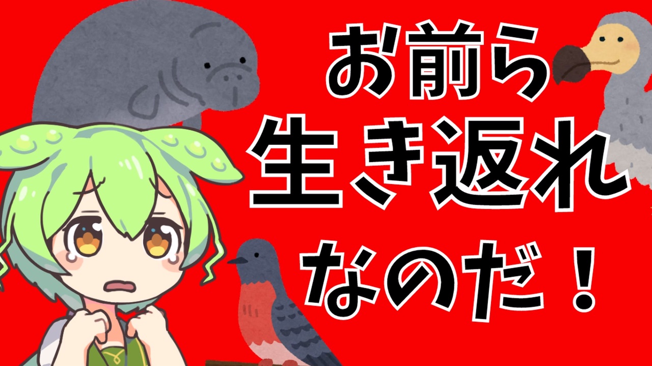 ずんだもんが人類に滅ぼされた動物たちを紹介するようです。<br><br>●使用画像<br><br>いらすとや<br><a href="https://www.irasutoya.com/" target="_blank" rel="noopener nofollow">https://www.irasutoya.com/</a><br><br>ニコニコの文字数制限が終わってるので、他使用画像はこちらを参考に。<br><a href="https://www.youtube.com/watch?v=V-84ZZyrB68&ab_channel=%E3%82%8C%E3%82%82%E3%82%93%E3%80%90%E3%81%9A%E3%82%93%E3%81%A0%E3%82%82%E3%82%93%E8%A7%A3%E8%AA%AC%E3%80%91" target="_blank" rel="noopener nofollow">https://www.youtube.com/watch?v=V-84ZZyrB68&ab_channel=%E3%82%8C%E3%82%82%E3%82%93%E3%80%90%E3%81%9A%E3%82%93%E3%81%A0%E3%82%82%E3%82%93%E8%A7%A3%E8%AA%AC%E3%80%91</a><br><br>●使用音源<br><br>musmus<br><a href="https://musmus.main.jp/" target="_blank" rel="noopener nofollow">https://musmus.main.jp/</a><br><br>効果音ラボ<br><a href="https://soundeffect-lab.info/" target="_blank" rel="noopener nofollow">https://soundeffect-lab.info/</a><br><br>On-Jin<br><a href="https://on-jin.com/kiyaku.php" target="_blank" rel="noopener nofollow">https://on-jin.com/kiyaku.php</a><br><br><br>●立ち絵<br><br>坂本アヒル神<br><a href="https://seiga.nicovideo.jp/user/illust/97452727" target="_blank" rel="noopener nofollow">https://seiga.nicovideo.jp/user/illust/97452727</a><br><br><br>●声<br><br>VOICEVOX<br><a href="https://voicevox.hiroshiba.jp/" target="_blank" rel="noopener nofollow">https://voicevox.hiroshiba.jp/</a><br><br>●使用フォント<br><br>けいふぉんと<br><a href="http://font.sumomo.ne.jp/font_1.html" target="_blank" rel="noopener nofollow">http://font.sumomo.ne.jp/font_1.html</a>