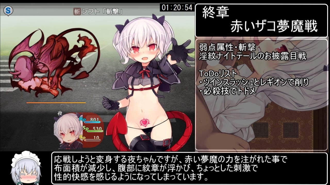 淫紋悪堕ちは変身ヒロインの華なので初投稿です<br><br><br><br><strong>【サークルくらすけ倉庫】</strong>様制作のR-18RPG<br><strong>【ナイトテール】</strong><span style="font-size: 14px;">トゥルーエンド</span>RTAです。<br><br>計測開始:ニューゲームを選択した瞬間<br>計測終了:選択肢「エンディングへ」を選択した瞬間<br><br><a href="https://www.nicovideo.jp/watch/sm40977262" class="watch">sm40977262</a>←前:次→ <a href="https://www.nicovideo.jp/watch/sm41045651" class="watch">sm41045651</a><br><br>ナイトテールRTAマイリスト→<a href="https://www.nicovideo.jp/mylist/73559923" target="_blank" rel="noopener">mylist/73559923</a><br><br>パート1と単発のマイリスト→<a href="https://www.nicovideo.jp/mylist/70659794" target="_blank" rel="noopener">mylist/70659794</a><br><br><br>twitter:@hihidowser<br><br>スマホやタブレット等から見られない方はこちらの動画を参考にすると<br>見られるようになるはずです→ <a href="https://www.nicovideo.jp/watch/sm38575952" class="watch">sm38575952</a><br><br><strong>[ナイトテール]の購入は下記サイトにて!<br>DLsite(PC)<br><br>FANZA(PC)<br><br>HBOX(スマホ)<br></strong>
