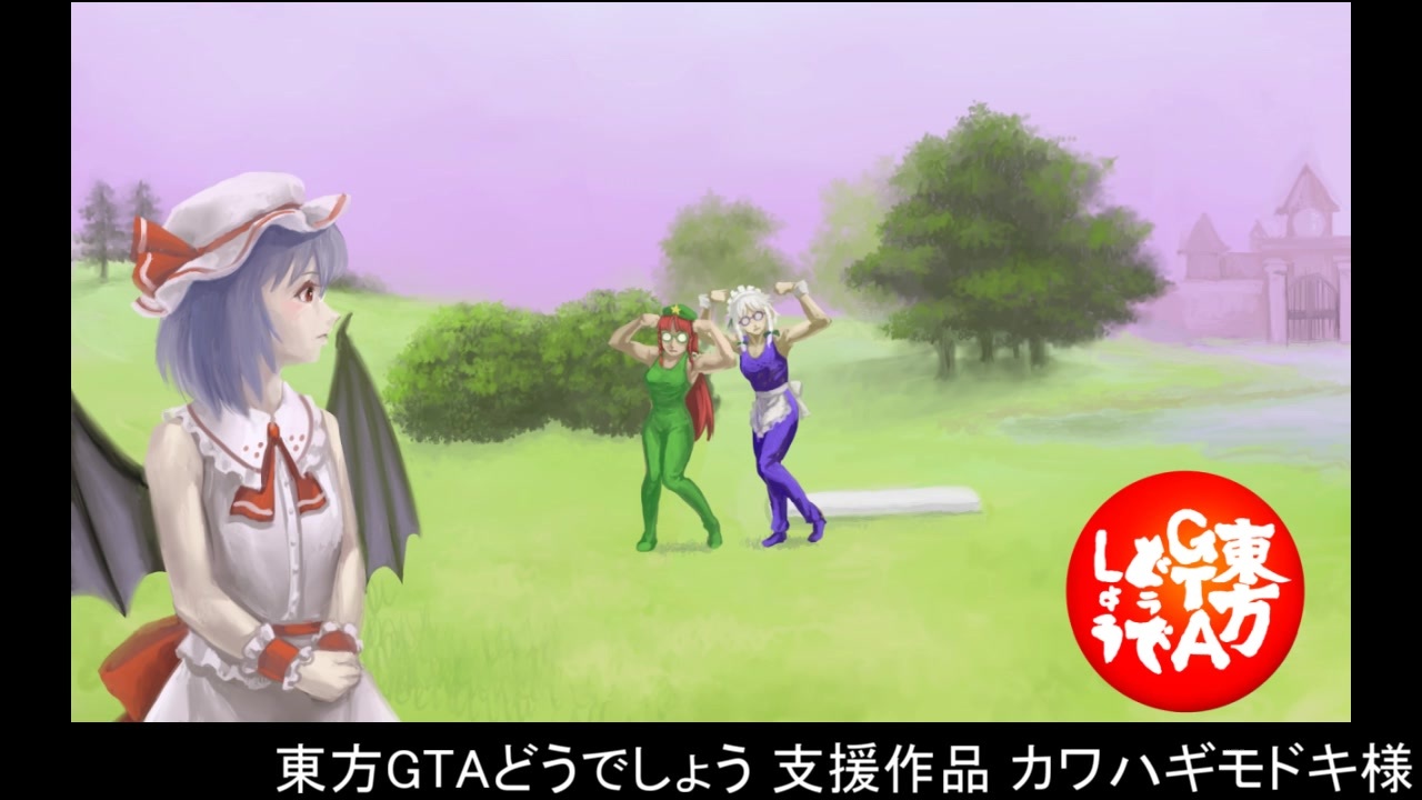 レミリア:チリアド山見るならバルコニーで。<br><br>サムネの作品とエンドカード・カワハギモドキ様 <a href="https://seiga.nicovideo.jp/seiga/im10987227" target="_blank" rel="noopener">im10987227</a><br><a href="https://twitter.com/kawahagi_modoki/status/1069592873316769793" target="_blank" rel="noopener nofollow">https://twitter.com/kawahagi_modoki/status/1069592873316769793</a><br><br>GTAV レミリア・フランMOD制作・ニク様<br><a href="https://www.gta5-mods.com/player/scalet-sisters-touhou-project-add-on" target="_blank" rel="noopener nofollow">https://www.gta5-mods.com/player/scalet-sisters-touhou-project-add-on</a><br><br><br>第8夜→<a href="https://www.nicovideo.jp/watch/sm40943039" class="watch">sm40943039</a> 第10夜→<a href="https://www.nicovideo.jp/watch/sm41080309" class="watch">sm41080309</a> 今作リスト→<a href="https://www.nicovideo.jp/mylist/73008666" target="_blank" rel="noopener">mylist/73008666</a><br>東方GTAどうでしょうシリーズ→<a href="https://www.nicovideo.jp/mylist/25486092" target="_blank" rel="noopener">mylist/25486092</a><br>うp主のブログ→<a href="http://touhougtadoudeshou.blog.fc2.com/" target="_blank" rel="noopener nofollow">http://touhougtadoudeshou.blog.fc2.com/</a><br>進行状況など→<a href="https://twitter.com/ShirayukiFairan" target="_blank" rel="noopener nofollow">https://twitter.com/ShirayukiFairan</a><br>