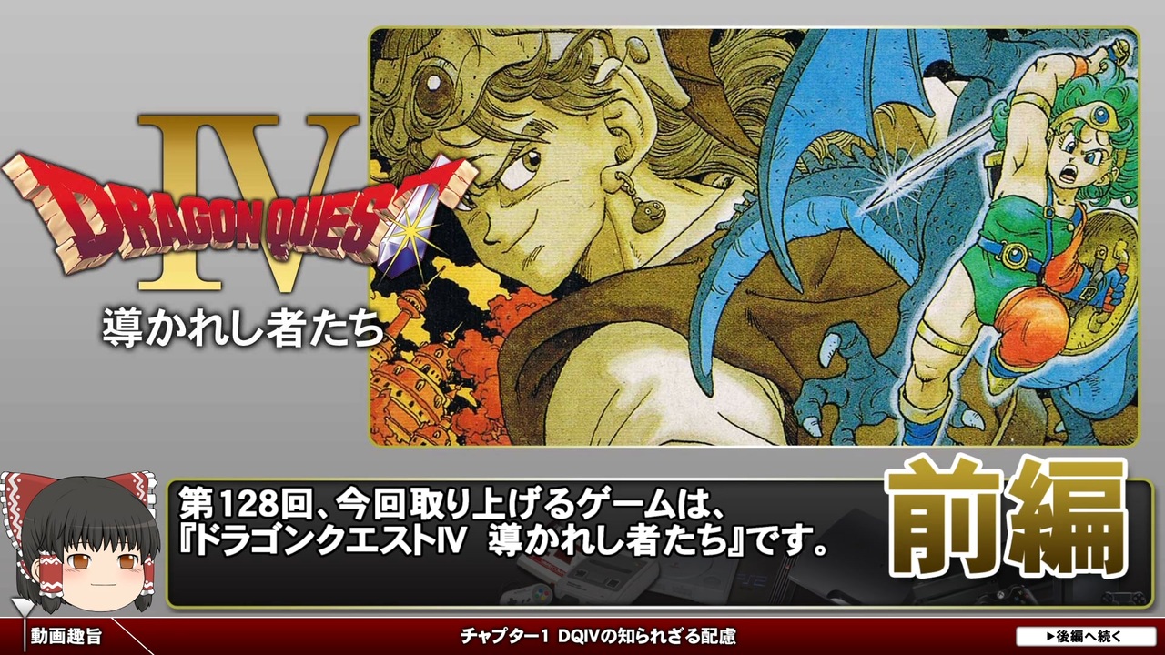 <strong>原則、「前編」「後編」合わせて毎回約30分を予定しています。<br><br>▼第128回「ドラゴンクエストⅣ 導かれし者たち」</strong><br>中編:<a href="https://www.nicovideo.jp/watch/sm41054979" class="watch">sm41054979</a><br>後編:<a href="https://www.nicovideo.jp/watch/sm41075152" class="watch">sm41075152</a><br><br>▼第10回「ドラクエⅣ」<br>前編:<a href="https://www.nicovideo.jp/watch/sm31319264" class="watch">sm31319264</a><br>後編:<a href="https://www.nicovideo.jp/watch/sm31345689" class="watch">sm31345689</a><br><br>■youtubeはこちら <a href="https://youtu.be/8HP-lPZFcKc" target="_blank" rel="noopener nofollow">https://youtu.be/8HP-lPZFcKc</a><br>■ゲーム夜話ツイッター <a href="https://twitter.com/gameyawa" target="_blank" rel="noopener nofollow">https://twitter.com/gameyawa</a><br><br>(C)1986,1987,1988,1990 ARMOR PROJECT/BIRD STUDIO/SPIKE CHUNSOFT/SQUARE ENIX All Rights Reserved.<br>(C)SUGIYAMA KOBO