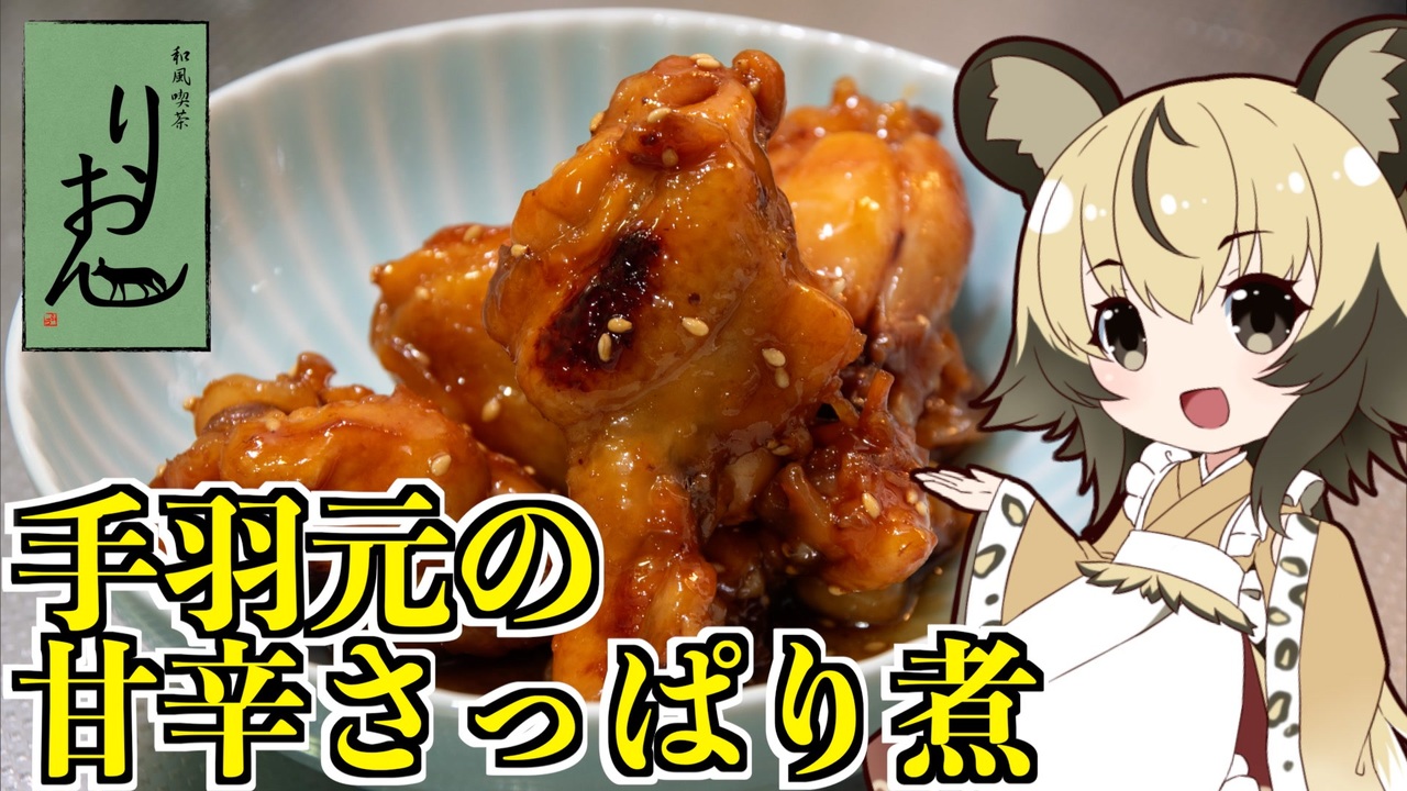 今回は「手羽元の甘辛さっぱり煮」を作っていきましょう。<br><br>前回に引き続き、お酢たっぷり使うメニューでさっぱりしましょう。<br>酸味が苦手な方はしっかり煮詰めて、<br>酸味が好きな方は最後に小さじ1お酢を後がけすると<br>好みに合わせて酸味を調整できますよ<br><br>■材料(二人分)<br>手羽元 500g<br>砂糖 50g<br>料理酒 50mL<br>醤油 50mL<br>お酢 50mL<br>みりん 50mL<br><br>炒りごま お好みの量<br><br>■所要時間<br>作業時間:煮込み30分+煮詰め5分<br><br>youtube:<a href="https://youtu.be/BGD89gvgvzM" target="_blank" rel="noopener nofollow">https://youtu.be/BGD89gvgvzM</a><br>twitter:@lycaon_kitchen<br><br>りおんの和風喫茶:<a href="https://www.nicovideo.jp/series/77190" target="_blank" rel="noopener">series/77190</a><br>おつかれごはん:<a href="https://www.nicovideo.jp/series/155690" target="_blank" rel="noopener">series/155690</a><br>手作り和菓子でちょっとひとやすみしませんか?:<a href="https://www.nicovideo.jp/series/155691" target="_blank" rel="noopener">series/155691</a><br><br>立ち絵:星華 彩二魔 様<br>イラスト:いらすとや、AWD kitchen<br>音源:DOVA-SYNDROME、ポケットサウンド<br>音声:VOICEROID2 紲星あかり+ exVOICE