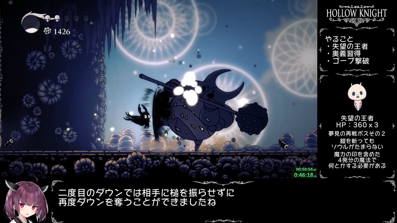 ふるーくねすと!<br><br>Hollow Knightのスピードランカテゴリー、112%+APB NMGの再走記録を東北きりたんが解説した動画です。<br>今回の記録はロードレスタイム:3:47:56、リアルタイム:4:07:44でした。<br><br>Hollow Knight steamページ<br><a href="https://store.steampowered.com/app/367520/Hollow_Knight/?l=japanese" target="_blank" rel="noopener nofollow">https://store.steampowered.com/app/367520/Hollow_Knight/?l=japanese</a><br><br>---------------------参考にさせていただいた動画など--------------------------<br>valigo兄貴<br><a href="https://www.youtube.com/watch?v=QAgOpTKwpsQ" target="_blank" rel="noopener nofollow">https://www.youtube.com/watch?v=QAgOpTKwpsQ</a><br>HollowKnight_JP_discordサーバー<br><a href="https://twitter.com/un_yo_san/status/1456597988944408577" target="_blank" rel="noopener nofollow">https://twitter.com/un_yo_san/status/1456597988944408577</a><br>英語版wiki<br><a href="https://hollowknight.fandom.com/wiki/Hollow_Knight_Wiki" target="_blank" rel="noopener nofollow">https://hollowknight.fandom.com/wiki/Hollow_Knight_Wiki</a><br>日本語版wiki<br><a href="https://wikiwiki.jp/hollowknight/" target="_blank" rel="noopener nofollow">https://wikiwiki.jp/hollowknight/</a><br>----------------------------------------------------------------------------------<br>無編集版<br><a href="https://www.youtube.com/watch?v=CG7GtTWUulY" target="_blank" rel="noopener nofollow">https://www.youtube.com/watch?v=CG7GtTWUulY</a><br><br>前シリーズはこちら:<a href="https://www.nicovideo.jp/series/289523" target="_blank" rel="noopener">series/289523</a><br><br>前:<a href="https://www.nicovideo.jp/watch/sm40928145" class="watch">sm40928145</a><br>次:<a href="https://www.nicovideo.jp/watch/sm41057406" class="watch">sm41057406</a><br><br>※算数ができていなかったので動画を修正しました<br><br><a target="_blank" href="https://qa.nicovideo.jp/faq/show/19424?site_domain=default" style="font-size: 13px;color: #657586; text-decoration: underline; line-height: 1.4">この動画は投稿者によって修正されました</a>