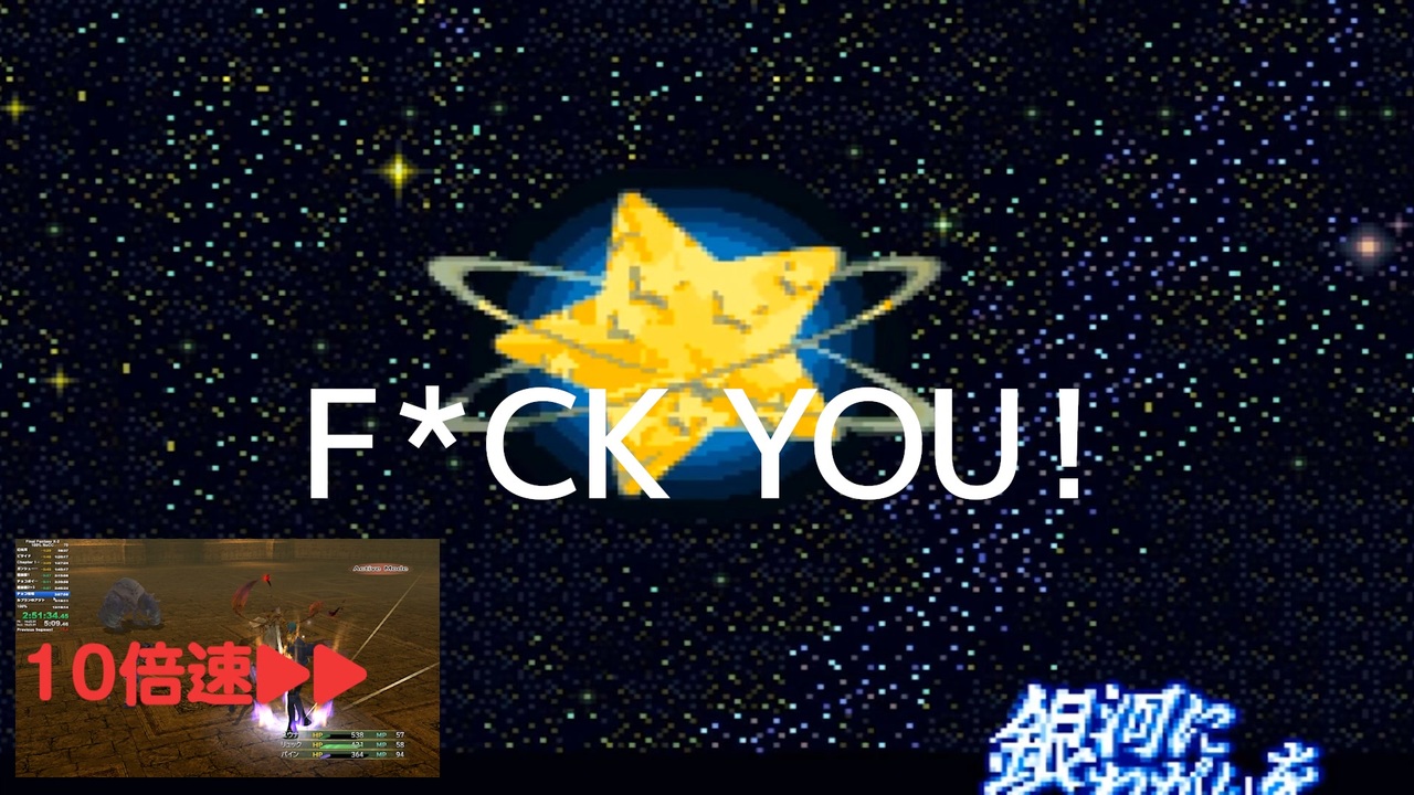 もうタイムはいらない‥‥‥ 俺は俺のRTAを生きる<br><br>【ゲーム概要】<br>・FINAL FANTASY X-2 (ファイナルファンタジー10-2)<br>・PC版 Steam<br>・100%<br>・No Creature Creator (クリーチャークリエイト禁止)<br>・計測区間:New Game選択~終了画面100%表示<br>・セーブ機能使用<br>・バグ技禁止<br>・チートコマンド禁止 (倍速機能など)<br><br>【リンク】<br>Part1:<a href="https://www.nicovideo.jp/watch/sm40776052" target="_blank" rel="noopener nofollow">https://www.nicovideo.jp/watch/sm40776052</a><br><br>マイリスト:<a href="https://www.nicovideo.jp/mylist/73452210" target="_blank" rel="noopener nofollow">https://www.nicovideo.jp/mylist/73452210</a><br><br>YouTube:<a href="https://youtu.be/TlaNqhRxqiA" target="_blank" rel="noopener nofollow">https://youtu.be/TlaNqhRxqiA</a><br><br>未編集ノーカーット超大作:<a href="https://youtu.be/xeSsCrFZYeg" target="_blank" rel="noopener nofollow">https://youtu.be/xeSsCrFZYeg</a><br><br>Twitter:<a href="https://twitter.com/lunearcenciel" target="_blank" rel="noopener nofollow">https://twitter.com/lunearcenciel</a><br><br>Copyright (C) 2001, 2003, 2019 SQUARE ENIX CO., LTD. All Rights Reserved.