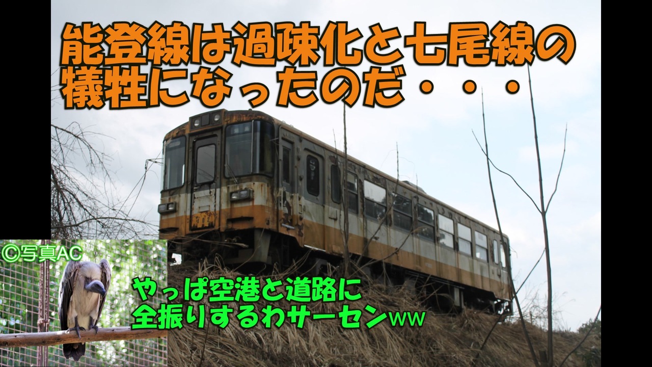 この動画は前後編になります。前編がまだの方は先にこちらをご覧下さい。→<br><br>七尾線の非電化区間を引き受け、規模を拡大したのと鉄道。しかし、それが結果的にのと鉄道のクビを締めることになってしまいました。<br>他地域よりも早い過疎化やモータリゼーション、規模拡大に伴う経費増大に、七尾線特有の負担がのと鉄道を苦しめることになり、やがて2度の廃線を経験することになります。そして、大半の路線を失ったのと鉄道と、鉄路が消えた奥能登地域に残されたものとは・・・?<br /><span style="color: #000000; font-size: 14px;">迷航空会社列伝</span><span style="color: #006699; font-size: 14px;"><a href="https://www.nicovideo.jp/mylist/24098760" target="_blank" rel="noopener">mylist/24098760</a></span><span style="color: #000000; font-size: 14px;"> 迷列車北陸編</span><span style="color: #006699; font-size: 14px;"><a href="https://www.nicovideo.jp/mylist/19084652" target="_blank" rel="noopener">mylist/19084652</a> </span><span style="color: #000000; font-size: 14px;">東海道交通戦争</span><span style="color: #006699; font-size: 14px;"><a href="https://www.nicovideo.jp/mylist/57958388" target="_blank" rel="noopener">mylist/57958388</a></span><span style="color: #000000; font-size: 14px;"> 交通機関の栄枯盛衰 </span><a href="https://www.nicovideo.jp/mylist/66898301" target="_blank" rel="noopener">mylist/66898301</a><br><span style="color: #000000; font-size: 14px;">ブログ→</span><span style="color: #006699; font-size: 14px;"><a href="http://www.meihokuriku-alps.com" target="_blank" rel="noopener nofollow">http://www.meihokuriku-alps.com</a></span><br>note→<a href="https://note.com/meihokuriku" target="_blank" rel="noopener nofollow">https://note.com/meihokuriku</a><br><span style="color: #000000; font-size: 14px;">使用BGM<br>甘茶の音楽工房様 </span><span style="color: #006699; font-size: 14px;"><a href="http://amachamusic.chagasi.com/index.html" target="_blank" rel="noopener nofollow">http://amachamusic.chagasi.com/index.html</a></span><br><span style="color: #000000; font-size: 14px;">魔王魂様 </span><span style="color: #006699; font-size: 14px;"><a href="https://maoudamashii.jokersounds.com/list/bgm5.html" target="_blank" rel="noopener nofollow">https://maoudamashii.jokersounds.com/list/bgm5.html</a></span>