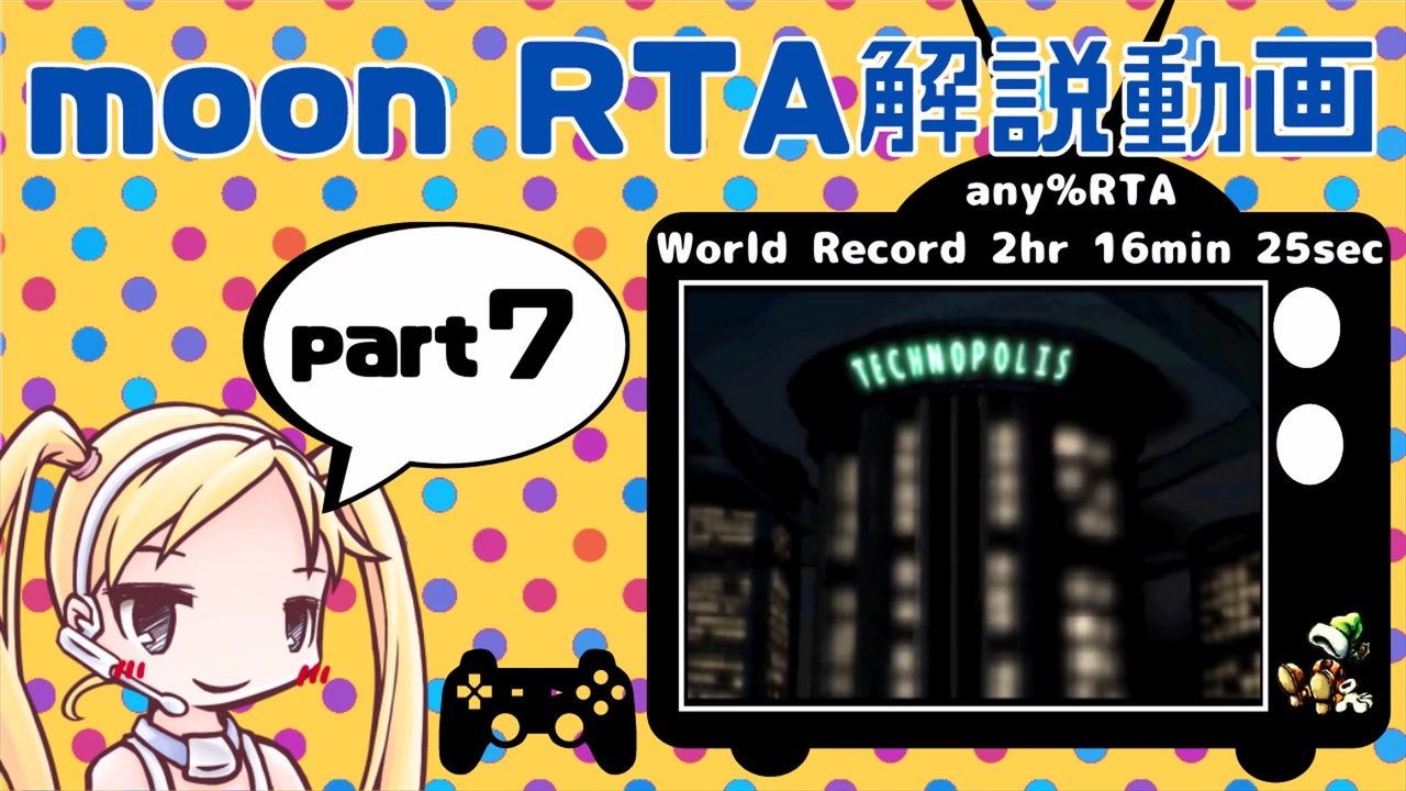 <strong>『ようこそ、特会員様』</strong><br> <br>ありそうでなかったmoon any%RTAの解説動画だよ(*´꒳`*)<br>RTA in Japan出場を目指し、Twitchでの配信をはじめました!<br> <br>part 1 ⇒ <u><a href="https://www.nicovideo.jp/watch/sm40706890" class="watch">sm40706890</a></u><br>次 ⇒ <u><a href="https://www.nicovideo.jp/watch/sm41089595" class="watch">sm41089595</a></u><br>前 ⇒ <u><a href="https://www.nicovideo.jp/watch/sm40906205" class="watch">sm40906205</a></u><br><br>□ Twitch:毎週土曜日配信<br> <u><a href="https://www.twitch.tv/tecchan_rta" target="_blank" rel="noopener nofollow">https://www.twitch.tv/tecchan_rta</a></u><br><br>□ Twitter:動画制作の進捗状況。動画へのご意見・感想もどうぞ!<br> <u><a href="https://twitter.com/tecchan_rta" target="_blank" rel="noopener nofollow">https://twitter.com/tecchan_rta</a></u><br><br>□ YouTube:RTA記録動画<br> <u><a href="https://www.youtube.com/channel/UCSS-Yo7U7sSYx7mWnihhtLg" target="_blank" rel="noopener nofollow">https://www.youtube.com/channel/UCSS-Yo7U7sSYx7mWnihhtLg</a></u><br><br>□ Speedrun.com:世界記録<br> <u><a href="https://www.speedrun.com/user/tecchan" target="_blank" rel="noopener nofollow">https://www.speedrun.com/user/tecchan</a></u><br><br>-----------------ルール-----------------<br> <br><u>計測区間</u><br>・タイトル画面で『Game start』を選択、または空のセーブを選択した時点から<br>計測開始。<br>・ゲーム画面に『CONTINUE?』の選択肢が表示された時点で計測終了。<br> <br><u>一般的なルール</u><br>・ランは計測開始から終了を連続して録画したビデオによる証明が必要。<br>・セーブファイルのリロードは、ランの中で作成されたものであれば可能<br>(死亡またはゲームリセット後)。<br>・セーブファイルのリロードは、以下の条件のうち最低1つを満たしていること。<br>ー空のセーブを選択してランを開始する。<br>ーランの開始直前にセーブメニューを表示する。<br>ーセーブファイルがない。<br>ー再読み込みされるセーブファイル名と他のセーブファイル名と区別できる。<br> <br><u>PCでプレーする場合</u><br>・ゲームの再起動は、ゲーム内で言語を変更する操作によってのみ可能<br>(Lを押してYesを選択する)。<br>・Qを押して終了する、ゲームウィンドウを閉じるとランのリセットとみなす。<br> <br>Speedrun.comより意訳<br>-------------------------------------