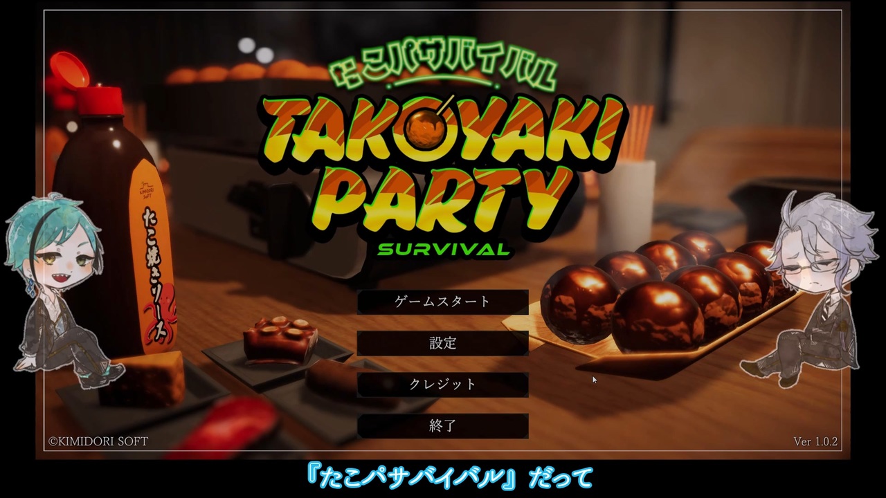 たこパサバイバルやって来ましたー!実際は1時間くらい遊んでる。<br>たこ焼きの具材から「タンパク質」「炭水化物」「脂質」をバランス良く摂取しながら生き延びよう、というゲームです。どれかが不足すると栄養失調となり、一定時間経つと死亡してしまいます。<br>たこ焼きを食べるとエネルギー(カロリー)が増加し、エネルギーが一定値を超えると「カロリーオーバー」となってたこ焼きを食べることが出来なくなるので、スペースキーを連打してスクワットをしてエネルギーを消費し、たこ焼きを食べられる状態を維持する必要があります。<br>具材は1日生き延びるごとに新しい具材が1つ追加されます。<br>忙しい!こんなに忙しいゲームだとは思わなかった!<br><br>※動画内注意書きに加えて※<br>・ゲーム内での会話はゲーム時の録音した会話を元にしているので言っていることが二転三転したり、ツイステの世界観とは異なる会話が含まれます。<br>・他の方が見て不快だと思われるようなコメントはこちらの判断で非表示にさせて頂く可能性がございます。また、そのようなコメントはなされないよう、ご協力頂けたらと思います。<br>・プレイヤーは楽しく遊んでいますんので、プレイ内容に関する過度な指摘や否定的なコメントはお控えください。<br><br>【プレイヤー紹介】<br>・フロイド…へも様(<a href="https://www.nicovideo.jp/user/33138776" target="_blank" rel="noopener">user/33138776</a>)<br>・アズール…鱗瞳(投稿主)<br><br>【立ち絵配布元】<br>・白桃ぜりぃ様<br><br>【ゲーム】<br>Steam:たこパ サバイバル <br><br>【編集ソフト】<br>・ゆっくりMovieMaker4<br><br>ご感想をいただけると喜びます↓<br>Twitter:@rindoct83_2525<br>マシュマロ:<a href="https://marshmallow-qa.com/rindoct83_2525?utm_medium=twitter&utm_source=promotion" target="_blank" rel="noopener nofollow">https://marshmallow-qa.com/rindoct83_2525?utm_medium=twitter&utm_source=promotion</a>