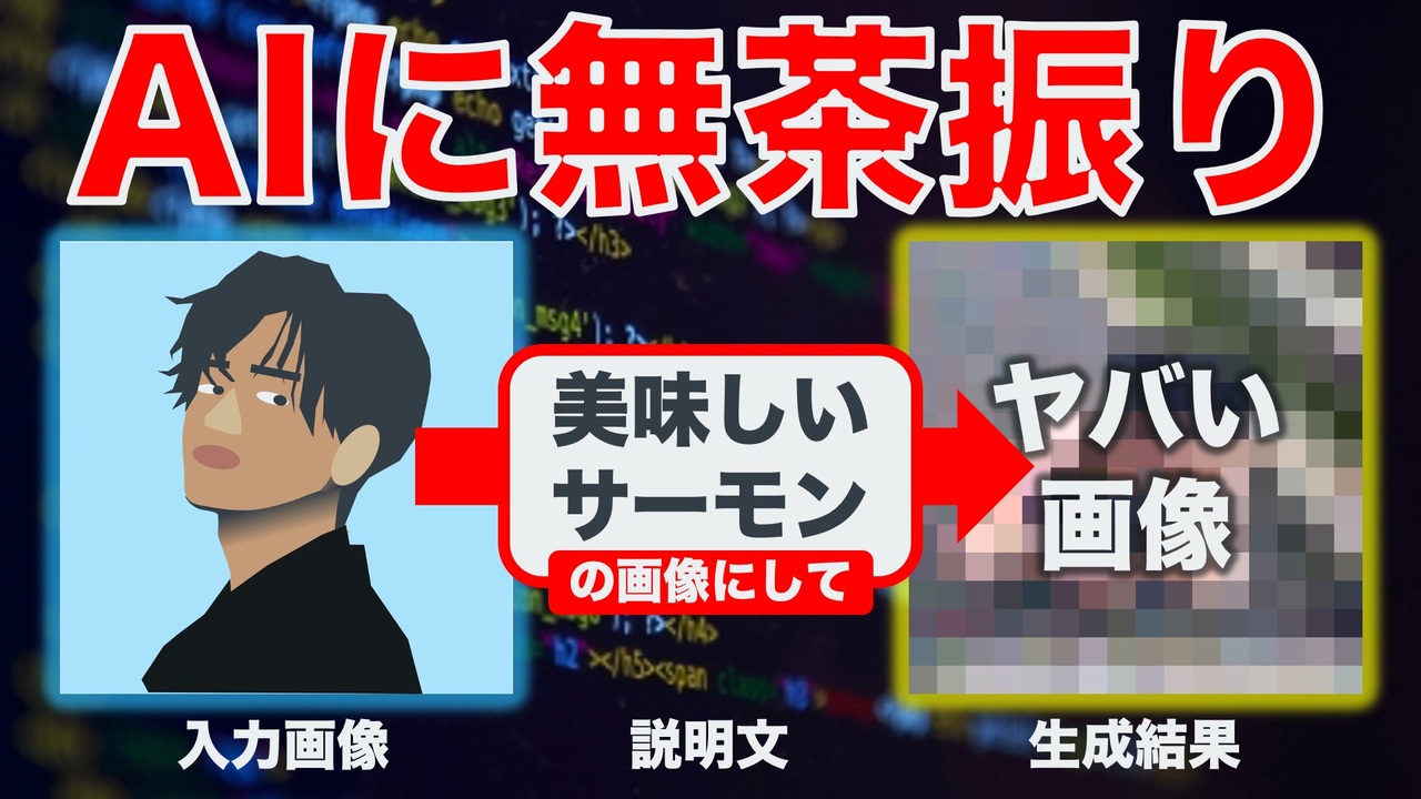最近話題の説明文を書くとそれに合わせた画像を作ってくれるAIに対して、無茶振りをしてみることで画像生成を失敗させる方法を探りました。<br>前半でStable Diffusionのでもと紹介をして、後半で原理から生成を失敗させる方法を考察して検証します。<br><br>Stable Diffusion: <a href="https://huggingface.co/spaces/stabilityai/stable-diffusion" target="_blank" rel="noopener nofollow">https://huggingface.co/spaces/stabilityai/stable-diffusion</a><br>High-Resolution Image Synthesis with Latent Diffusion Models<br>: <a href="https://arxiv.org/abs/2112.10752" target="_blank" rel="noopener nofollow">https://arxiv.org/abs/2112.10752</a><br>今回使ったコード: <a href="https://colab.research.google.com/drive/1x_vQHu6CRa0kwPGeT7WIDg--uvvWfxrG?usp=sharing" target="_blank" rel="noopener nofollow">https://colab.research.google.com/drive/1x_vQHu6CRa0kwPGeT7WIDg--uvvWfxrG?usp=sharing</a><br>友人: <a href="https://twitter.com/rossy_0213" target="_blank" rel="noopener nofollow">https://twitter.com/rossy_0213</a><br /><br>★各種SNSリンク<br>Twitter: <a href="https://twitter.com/yoidea" target="_blank" rel="noopener nofollow">https://twitter.com/yoidea</a><br>Instagram: <a href="https://www.instagram.com/yoidea" target="_blank" rel="noopener nofollow">https://www.instagram.com/yoidea</a><br>TikTok: <a href="https://www.tiktok.com/@yoidea" target="_blank" rel="noopener nofollow">https://www.tiktok.com/@yoidea</a><br><br>★連絡先<br>お問い合わせフォーム: <a href="https://forms.gle/wJam18y3fUfZfrjFA" target="_blank" rel="noopener nofollow">https://forms.gle/wJam18y3fUfZfrjFA</a><br>PGP公開鍵: <a href="https://ラムダ.com/pgp" target="_blank" rel="noopener nofollow">https://ラムダ.com/pgp</a>