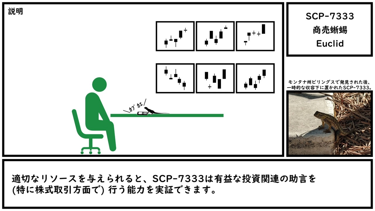 おそらく これこそ わたしが ながねん さがしもとめて いた もの なのだろう<br><br>本家記事 <a href="https://scp-wiki.wikidot.com/scp-7333" target="_blank" rel="noopener nofollow">https://scp-wiki.wikidot.com/scp-7333</a><br>翻訳記事 <a href="http://scp-jp.wikidot.com/scp-7333" target="_blank" rel="noopener nofollow">http://scp-jp.wikidot.com/scp-7333</a><br>作者 Zyn<br>SCP財団 <a href="http://scp-jp.wikidot.com" target="_blank" rel="noopener nofollow">http://scp-jp.wikidot.com</a><br>過去の動画はこちら <a href="https://www.nicovideo.jp/mylist/67620202" target="_blank" rel="noopener">mylist/67620202</a><br>CC BY-SA 3.0