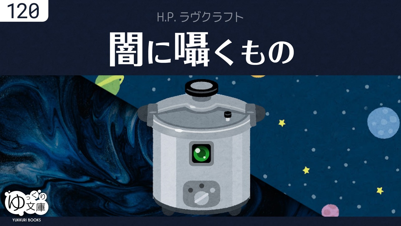 <span style="color: red;"><strong>120 ユゴスよりのもの──</strong></span><br>ミスカトニック大学のウィルマース助教授は、在野の研究者エイクリーと文通していた。エイクリーが住むバーモント州の山間部では、宇宙から飛来した知性体・ミ=ゴが跋扈しているという。ウィルマースは真偽を確かめようとするが...<br><span style="color: green;">The Whisperer in Darkness (1931) by Howard Phillips Lovecraft</span><br><br>(うp主より)《ソフトウェアトーク朗読劇場祭》の5本目! ラヴクラフト作品をふつうに作ってみたくなり、9/4から作成。ド直球のコズミック・ホラー。いかがだろうか。<br>編集後記:<a href="https://trynext.com/story/ybook/yb120.php" target="_blank" rel="noopener nofollow">https://trynext.com/story/ybook/yb120.php</a><br><br>●クトゥルフ神話<br><a href="https://www.nicovideo.jp/watch/sm41044677" class="watch">sm41044677</a> ラヴクラフト「ダゴン」<br><a href="https://www.nicovideo.jp/watch/sm41050256" class="watch">sm41050256</a> <span style="color: #ff00ff;"><strong>ラヴクラフト「闇に囁くもの」</strong></span><br><a href="https://www.nicovideo.jp/watch/sm45248379" class="watch">sm45248379</a> ラヴクラフト「エーリッヒ・ツァンの音楽」<br><br>●アメリカ文学<br><a href="https://www.nicovideo.jp/watch/sm22164912" class="watch">sm22164912</a> エドガー・アラン・ポー「黒猫」<br><a href="https://www.nicovideo.jp/watch/sm29016999" class="watch">sm29016999</a> エドガー・アラン・ポー「早すぎた埋葬」<br><a href="https://www.nicovideo.jp/watch/sm22643203" class="watch">sm22643203</a> ビアス「アウル・クリーク橋の出来事」<br><a href="https://www.nicovideo.jp/watch/sm24931315" class="watch">sm24931315</a> ボーム「オズの魔法使い」<br><a href="https://www.nicovideo.jp/watch/sm29541333" class="watch">sm29541333</a> ヘミングウェイ「キリマンジャロの雪」<br><a href="https://www.nicovideo.jp/watch/sm22215535" class="watch">sm22215535</a> O・ヘンリー「賢者の贈り物」<br><a href="https://www.nicovideo.jp/watch/sm32359748" class="watch">sm32359748</a> O・ヘンリー「運命の道」<br><a href="https://www.nicovideo.jp/watch/sm37985228" class="watch">sm37985228</a> O・ヘンリー「魔女のパン」<br><br>●ゆっくり文庫について<br>全部:<a href="https://www.nicovideo.jp/mylist/74874627" target="_blank" rel="noopener">mylist/74874627</a><br>近況:<a href="https://twitter.com/trynext" target="_blank" rel="noopener nofollow">https://twitter.com/trynext</a><br>---<br><br><br>