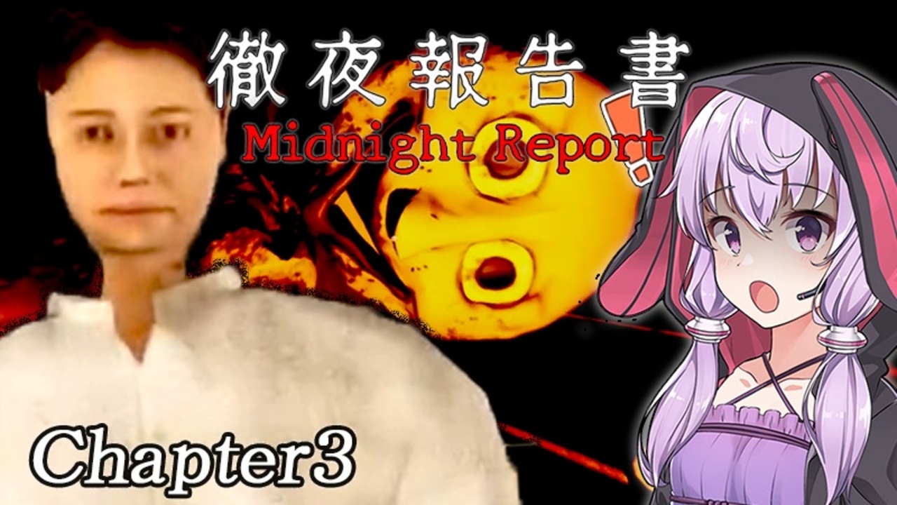 次回:<a href="https://www.nicovideo.jp/watch/sm43185784" class="watch">sm43185784</a><br>前回:<a href="https://www.nicovideo.jp/watch/sm41048844" class="watch">sm41048844</a><br>Part1:<a href="https://www.nicovideo.jp/watch/sm41039847" class="watch">sm41039847</a><br><br>▶ゲームページ<br><a href="https://store.steampowered.com/app/2054060/__Midnight_Report/" target="_blank" rel="noopener nofollow">https://store.steampowered.com/app/2054060/__Midnight_Report/</a><br>▶作者様<br><a href="https://twitter.com/mutsumutsu_dev" target="_blank" rel="noopener nofollow">https://twitter.com/mutsumutsu_dev</a><br><br>◎Story<br>徹夜報告書 | Midnight Report。それはレポート課題に追われる学生の悲劇体験。徹夜作業による幻覚をコンセプトとした和製3D探索型ホラーゲーム。<br><br>#ボイロ実況 #ボイスロイド #ホラーゲーム<br><br>お借りしたもの<br>結月ゆかり(こんにゃく様):<a href="https://seiga.nicovideo.jp/seiga/im8616496" target="_blank" rel="noopener nofollow">https://seiga.nicovideo.jp/seiga/im8616496</a><br>紲星あかり(新島秋一様):<a href="https://seiga.nicovideo.jp/seiga/im7753179" target="_blank" rel="noopener nofollow">https://seiga.nicovideo.jp/seiga/im7753179</a><br>BGM:<a href="https://dova-s.jp/" target="_blank" rel="noopener nofollow">https://dova-s.jp/</a><br><br>Twitter:<a href="https://twitter.com/natsumeeeee_ch" target="_blank" rel="noopener nofollow">https://twitter.com/natsumeeeee_ch</a>