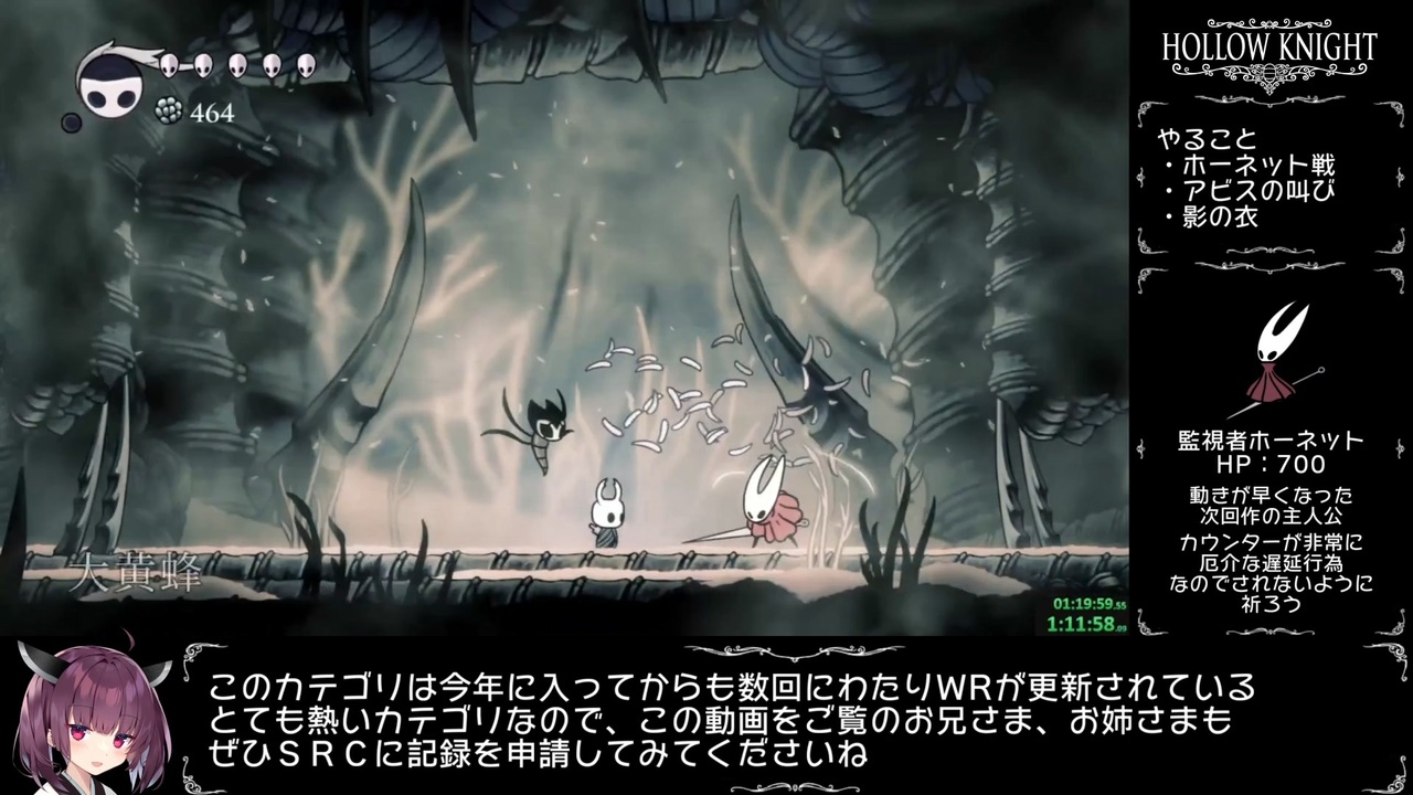いろいろ回収パート<br><br>Hollow Knightのスピードランカテゴリー、112%+APB NMGの再走記録を東北きりたんが解説した動画です。<br>今回の記録はロードレスタイム:3:47:56、リアルタイム:4:07:44でした。<br><br>Hollow Knight steamページ<br><a href="https://store.steampowered.com/app/367520/Hollow_Knight/?l=japanese" target="_blank" rel="noopener nofollow">https://store.steampowered.com/app/367520/Hollow_Knight/?l=japanese</a><br><br>---------------------参考にさせていただいた動画など--------------------------<br>HollowKnight_JP_discordサーバー<br><a href="https://twitter.com/un_yo_san/status/1456597988944408577" target="_blank" rel="noopener nofollow">https://twitter.com/un_yo_san/status/1456597988944408577</a><br>英語版wiki<br><a href="https://hollowknight.fandom.com/wiki/Hollow_Knight_Wiki" target="_blank" rel="noopener nofollow">https://hollowknight.fandom.com/wiki/Hollow_Knight_Wiki</a><br>日本語版wiki<br><a href="https://wikiwiki.jp/hollowknight/" target="_blank" rel="noopener nofollow">https://wikiwiki.jp/hollowknight/</a><br>----------------------------------------------------------------------------------<br>無編集版<br><a href="https://www.youtube.com/watch?v=CG7GtTWUulY" target="_blank" rel="noopener nofollow">https://www.youtube.com/watch?v=CG7GtTWUulY</a><br><br>前シリーズはこちら:<a href="https://www.nicovideo.jp/series/289523" target="_blank" rel="noopener">series/289523</a><br><br>前:<a href="https://www.nicovideo.jp/watch/sm41023309" class="watch">sm41023309</a><br>次:<a href="https://www.nicovideo.jp/watch/sm41122204" class="watch">sm41122204</a><br>