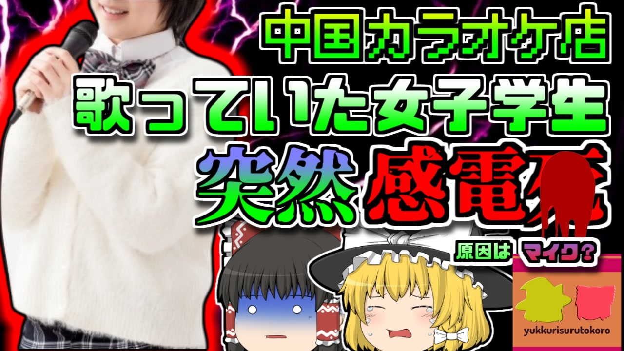 今回紹介するのは、以前からリクエストがあった「中国カラオケ店感電」です。<br>中華人民共和国南寧市のとあるカラオケ店では、市内の学校に通う女子学生の「Aさん」が、同級生と共に来店していました。<br>彼女はいつも通りに部屋に入り、マイクを握って歌っていましたが、突然感電し、その後病院に運ばれましたが、この世を去ってしまいました。<br><br><br>はっきりとした原因は発表されていませんでしたが、彼女はカラオケ店に設置されていた、有線マイクによって感電したと考えられ、彼女は運ばれるまでのおよそ10分以上の間、感電し続けていたと見られました。<br><br>なぜ、彼女は長時間感電し続けていたのでしょうか?<br><br><a href="#" class="seekTime" data-seekTime="00:00" onclick="seekNicoPlayer('#00:00'); return false;">#00:00</a> 冒頭挨拶<br><a href="#" class="seekTime" data-seekTime="00:24" onclick="seekNicoPlayer('#00:24'); return false;">#00:24</a> 視聴上の注意・免責事項<br><a href="#" class="seekTime" data-seekTime="1:06" onclick="seekNicoPlayer('#1:06'); return false;">#1:06</a> 現地の説明<br><a href="#" class="seekTime" data-seekTime="1:47" onclick="seekNicoPlayer('#1:47'); return false;">#1:47</a> 女子高生の「Aさん」<br><a href="#" class="seekTime" data-seekTime="2:31" onclick="seekNicoPlayer('#2:31'); return false;">#2:31</a> 同級生とカラオケへ。しかし・・・<br><a href="#" class="seekTime" data-seekTime="3:58" onclick="seekNicoPlayer('#3:58'); return false;">#3:58</a> 原因の調査<br><a href="#" class="seekTime" data-seekTime="4:20" onclick="seekNicoPlayer('#4:20'); return false;">#4:20</a> 考えられる複数の要因<br><a href="#" class="seekTime" data-seekTime="4:53" onclick="seekNicoPlayer('#4:53'); return false;">#4:53</a> 中国での一般的なマイク電圧<br><a href="#" class="seekTime" data-seekTime="5:17" onclick="seekNicoPlayer('#5:17'); return false;">#5:17</a> 適切な接続ではなかった<br><a href="#" class="seekTime" data-seekTime="7:08" onclick="seekNicoPlayer('#7:08'); return false;">#7:08</a> 10分近く感電<br><a href="#" class="seekTime" data-seekTime="7:46" onclick="seekNicoPlayer('#7:46'); return false;">#7:46</a> 無線に切り替えられない事情<br><br>引用・出展・参考文献<br>Wikipedia<br><a href="https://ishort.ink/oZgJ" target="_blank" rel="noopener nofollow">https://ishort.ink/oZgJ</a><br>北海道 でんき保安協会<br><a href="https://ishort.ink/P86a" target="_blank" rel="noopener nofollow">https://ishort.ink/P86a</a><br>亜州ビジネス China<br><a href="https://ishort.ink/W922" target="_blank" rel="noopener nofollow">https://ishort.ink/W922</a><br>人民網日本語版<br><a href="https://ishort.ink/JiTY" target="_blank" rel="noopener nofollow">https://ishort.ink/JiTY</a><br>Creators lab<br><a href="https://ishort.ink/YWiJ" target="_blank" rel="noopener nofollow">https://ishort.ink/YWiJ</a><br>その他視聴者提供資料など<br><br><br><br />※この動画は過去の事件を知り、現在でも同じことが発生する危険性を再認識、関与しないように促すための動画であり、視聴者を扇動、動揺を誘うためのコンテンツではありません。<br><br>ご要望にお応えして、メンバーシップの開設を行いました。<br>下記URLからも登録可能ですので、ご興味がある方は是非ご参加ください。<br><a href="https://www.youtube.com/channel/UCcT5a1J7XJW7CLYI2RKl4pw/join" target="_blank" rel="noopener nofollow">https://www.youtube.com/channel/UCcT5a1J7XJW7CLYI2RKl4pw/join</a><br><br><br>Twitter<br>→<a href="https://twitter.com/yukkurisurutoko" target="_blank" rel="noopener nofollow">https://twitter.com/yukkurisurutoko</a><br><br>取り急ぎ、簡易的にですがマイリストを作りました。<br>【ゆっくり解説】事故・事件関係紹介リスト <br><a href="https://www.nicovideo.jp/mylist/71034319" target="_blank" rel="noopener nofollow">https://www.nicovideo.jp/mylist/71034319</a><br>【ゆっくり解説】放射線系事故<br><a href="https://www.nicovideo.jp/mylist/71034368" target="_blank" rel="noopener nofollow">https://www.nicovideo.jp/mylist/71034368</a><br>【ゆっくり解説】鉄道系事故・事件関連<br><a href="https://www.nicovideo.jp/mylist/71034379" target="_blank" rel="noopener nofollow">https://www.nicovideo.jp/mylist/71034379</a>