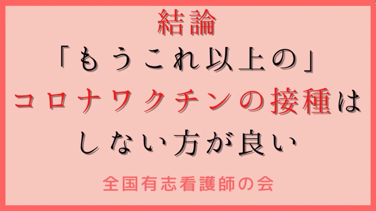 データ詳細 【全国有志看護師の会】緊急声明「もうこれ以上のコロナワクチン接種はしない方が良い」&アプ主+α