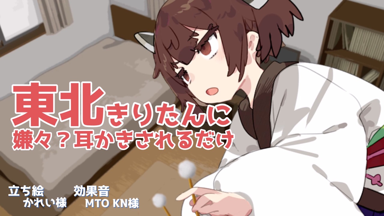 仕事に疲れ果ててきりたんに耳かきして貰う話です。<br><br><span style="color: #a61c00;"><strong>きりたん:</strong></span><br><span style="color: #a61c00;"> ゲーム大好き。好意を表に出すことは殆どない。<br> 最近ボイロとしての役割を果たせていないのが不満。</span><br><span style="color: #4a86e8;"><strong>マスター:</strong></span><br><span style="color: #4a86e8;"> ゲーム大好き。ブラック社員。<br> お迎え当初はきりたんに色々喋らせたが最近はゲーム相手で満足してしまっている。</span><br><br><strong>イヤホン・ヘッドホンを推奨します。</strong><br>次回:<a href="https://www.nicovideo.jp/watch/sm41239961" class="watch">sm41239961</a><br><br>■声<br>VOICEROID+ 東北きりたんEX<br><a href="https://www.ah-soft.com/voiceroid/kiritan/" target="_blank" rel="noopener nofollow">https://www.ah-soft.com/voiceroid/kiritan/</a><br><br>■立ち絵<br>からい(かれい)様作 東北きりたん<br><a href="https://seiga.nicovideo.jp/seiga/im7760810" target="_blank" rel="noopener nofollow">https://seiga.nicovideo.jp/seiga/im7760810</a><br><a href="https://seiga.nicovideo.jp/seiga/im10911207" target="_blank" rel="noopener nofollow">https://seiga.nicovideo.jp/seiga/im10911207</a><br><br>■効果音<br>MTO KN様 <a href="https://www.youtube.com/c/jojokeiosu" target="_blank" rel="noopener nofollow">https://www.youtube.com/c/jojokeiosu</a><br>Atelier Honey*様 キミと過ごす1日のオト~ASMR生活音集~ <a href="https://www.dlsite.com/maniax/work/=/product_id/RJ327926.html" target="_blank" rel="noopener nofollow">https://www.dlsite.com/maniax/work/=/product_id/RJ327926.html</a>