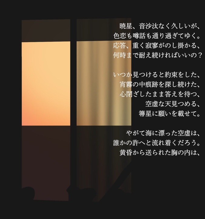 <span style="color: #0000ff;">このメッセージは暗号化されています。</span><br> <br> <br> <br>認証コードの黄昏<br>詞 : 井荷麻奈実<br>曲 : 井荷麻奈実<br>歌 : UTAU (つくよみちゃんUTAU音源)<br><br>off vocal→ そのうち<br>UTAU sound source→ <a href="https://tyc.rei-yumesaki.net/material/utau/" target="_blank" rel="noopener nofollow">https://tyc.rei-yumesaki.net/material/utau/</a><br>youtube→ <a href="https://youtu.be/r_8OAZqZEQc" target="_blank" rel="noopener nofollow">https://youtu.be/r_8OAZqZEQc</a><br><br>前作→ <a href="https://www.nicovideo.jp/watch/sm40357292" class="watch">sm40357292</a><br>次作→ <a href="https://www.nicovideo.jp/watch/sm41191925" class="watch">sm41191925</a><br /><span style="font-size: 10px;">- - - - - - - - - -<br>井荷麻奈実(いにまなみ) <a href="https://www.nicovideo.jp/mylist/69630963" target="_blank" rel="noopener">mylist/69630963</a><br>Twitter→ <a href="https://twitter.com/plusjan_quick" target="_blank" rel="noopener nofollow">https://twitter.com/plusjan_quick</a><br>Youtube→ <a href="https://youtube.com/c/12073" target="_blank" rel="noopener nofollow">https://youtube.com/c/12073</a><br>音源配布→ <a href="https://www.soundonlive.com/@plusjan_quick" target="_blank" rel="noopener nofollow">https://www.soundonlive.com/@plusjan_quick</a><br>音源配布2→ <a href="https://12073.booth.pm/" target="_blank" rel="noopener nofollow">https://12073.booth.pm/</a></span>