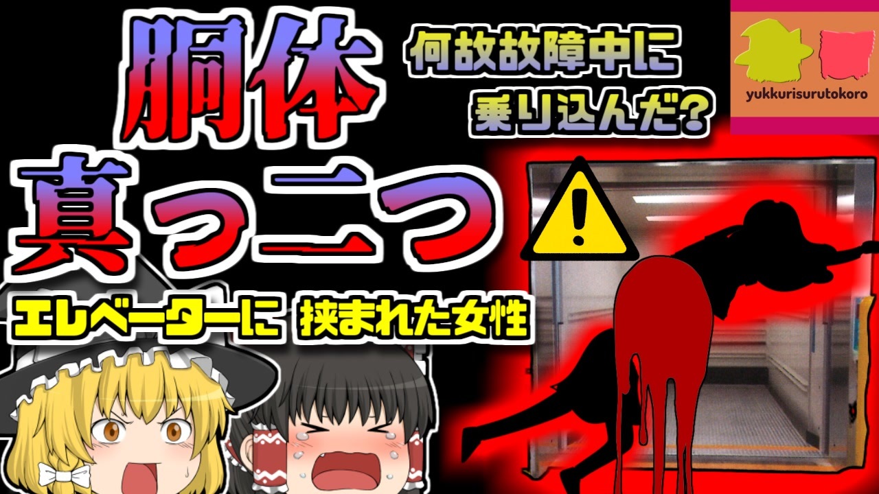 今回紹介するのは、以前リクエストがあった「エレベーター」に関する事例です。<br>北海道某所には、仕出し弁当や総菜、給食事業などを行っている、食品加工会社がありました。<br>この工場で総菜調理を担当していた女性「Aさん」はこの日、いつものように朝から出勤し、調理の準備をしていました。<br>総菜はプラスチック容器に入れて出荷されるため、彼女は一階倉庫にいる別の従業員と連絡を取りつつ、容器の入れられた段ボールを、業務用エレベーターで受け取る予定でした。<br>しかし、荷物が積み込まれていたエレベーターは、一階と二階の途中で停止してしまったため、Aさんはエレベーターの電源を一度切り、ドアを開けて半身を中に入れ、段ボールを直していました。<br>すると、突然エレベーターが落下し始め、彼女は二階の床と、エレベーターの天井部分に体を挟まれ・・・<br><br><a href="#" class="seekTime" data-seekTime="00:00" onclick="seekNicoPlayer('#00:00'); return false;">#00:00</a> 冒頭挨拶<br><a href="#" class="seekTime" data-seekTime="00:29" onclick="seekNicoPlayer('#00:29'); return false;">#00:29</a> 視聴上の注意・免責事項<br><a href="#" class="seekTime" data-seekTime="1:13" onclick="seekNicoPlayer('#1:13'); return false;">#1:13</a> 現地の説明<br><a href="#" class="seekTime" data-seekTime="1:57" onclick="seekNicoPlayer('#1:57'); return false;">#1:57</a> 食品加工会社からの通報<br><a href="#" class="seekTime" data-seekTime="2:19" onclick="seekNicoPlayer('#2:19'); return false;">#2:19</a> お惣菜担当の女性「Aさん」<br><a href="#" class="seekTime" data-seekTime="3:15" onclick="seekNicoPlayer('#3:15'); return false;">#3:15</a> 途中で停止したエレベーター<br><a href="#" class="seekTime" data-seekTime="3:42" onclick="seekNicoPlayer('#3:42'); return false;">#3:42</a> ドアをこじ開けて中に<br><a href="#" class="seekTime" data-seekTime="4:25" onclick="seekNicoPlayer('#4:25'); return false;">#4:25</a> 落下を始めた搬器<br><a href="#" class="seekTime" data-seekTime="5:23" onclick="seekNicoPlayer('#5:23'); return false;">#5:23</a> 複数の要因<br><a href="#" class="seekTime" data-seekTime="7:21" onclick="seekNicoPlayer('#7:21'); return false;">#7:21</a> OEM<br><a href="#" class="seekTime" data-seekTime="8:55" onclick="seekNicoPlayer('#8:55'); return false;">#8:55</a> 安全衛生教育不足も指摘された<br><a href="#" class="seekTime" data-seekTime="9:48" onclick="seekNicoPlayer('#9:48'); return false;">#9:48</a> もしもの時は正しい対応を<br><br>引用・出展・参考文献<br>北海道<br><a href="https://ishort.ink/5sk2" target="_blank" rel="noopener nofollow">https://ishort.ink/5sk2</a><br>Wikipedia<br><a href="https://ishort.ink/iLvt" target="_blank" rel="noopener nofollow">https://ishort.ink/iLvt</a><br>Digima ~出島~ OME生産とは<br><a href="https://ishort.ink/Z8qa" target="_blank" rel="noopener nofollow">https://ishort.ink/Z8qa</a><br>日本オーチス・エレベータ<br><a href="https://ishort.ink/5Hn8" target="_blank" rel="noopener nofollow">https://ishort.ink/5Hn8</a><br>三菱電機ビルソリューソンズ㈱<br><a href="https://ishort.ink/cCVG" target="_blank" rel="noopener nofollow">https://ishort.ink/cCVG</a><br>エレベーター点検に課せられている義務と周期<br><a href="https://ishort.ink/Dr5W" target="_blank" rel="noopener nofollow">https://ishort.ink/Dr5W</a><br>その他視聴者提供資料など<br><br><br><br />※この動画は過去の事件を知り、現在でも同じことが発生する危険性を再認識、関与しないように促すための動画であり、視聴者を扇動、動揺を誘うためのコンテンツではありません。<br><br>ご要望にお応えして、メンバーシップの開設を行いました。<br>下記URLからも登録可能ですので、ご興味がある方は是非ご参加ください。<br><a href="https://www.youtube.com/channel/UCcT5a1J7XJW7CLYI2RKl4pw/join" target="_blank" rel="noopener nofollow">https://www.youtube.com/channel/UCcT5a1J7XJW7CLYI2RKl4pw/join</a><br><br><br>Twitter<br>→<a href="https://twitter.com/yukkurisurutoko" target="_blank" rel="noopener nofollow">https://twitter.com/yukkurisurutoko</a><br><br>取り急ぎ、簡易的にですがマイリストを作りました。<br>【ゆっくり解説】事故・事件関係紹介リスト <br><a href="https://www.nicovideo.jp/mylist/71034319" target="_blank" rel="noopener nofollow">https://www.nicovideo.jp/mylist/71034319</a><br>【ゆっくり解説】放射線系事故<br><a href="https://www.nicovideo.jp/mylist/71034368" target="_blank" rel="noopener nofollow">https://www.nicovideo.jp/mylist/71034368</a><br>【ゆっくり解説】鉄道系事故・事件関連<br><a href="https://www.nicovideo.jp/mylist/71034379" target="_blank" rel="noopener nofollow">https://www.nicovideo.jp/mylist/71034379</a>