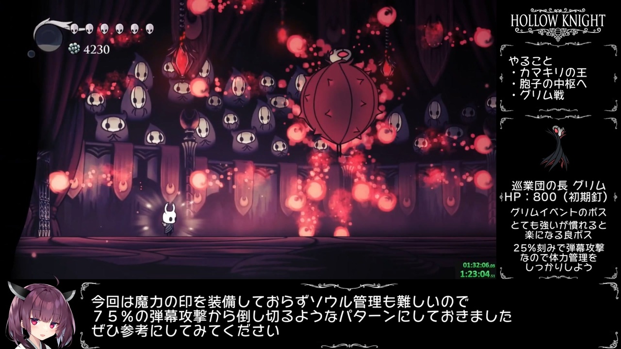 炎のダンスを踊るパート<br><br>Hollow Knightのスピードランカテゴリー、112%+APB NMGの再走記録を東北きりたんが解説した動画です。<br>今回の記録はロードレスタイム:3:47:56、リアルタイム:4:07:44でした。<br><br>Hollow Knight steamページ<br><a href="https://store.steampowered.com/app/367520/Hollow_Knight/?l=japanese" target="_blank" rel="noopener nofollow">https://store.steampowered.com/app/367520/Hollow_Knight/?l=japanese</a><br><br>---------------------参考にさせていただいた動画など--------------------------<br>HollowKnight_JP_discordサーバー<br><a href="https://twitter.com/un_yo_san/status/1456597988944408577" target="_blank" rel="noopener nofollow">https://twitter.com/un_yo_san/status/1456597988944408577</a><br>英語版wiki<br><a href="https://hollowknight.fandom.com/wiki/Hollow_Knight_Wiki" target="_blank" rel="noopener nofollow">https://hollowknight.fandom.com/wiki/Hollow_Knight_Wiki</a><br>日本語版wiki<br><a href="https://wikiwiki.jp/hollowknight/" target="_blank" rel="noopener nofollow">https://wikiwiki.jp/hollowknight/</a><br>----------------------------------------------------------------------------------<br>無編集版<br><a href="https://www.youtube.com/watch?v=CG7GtTWUulY" target="_blank" rel="noopener nofollow">https://www.youtube.com/watch?v=CG7GtTWUulY</a><br><br>前シリーズはこちら:<a href="https://www.nicovideo.jp/series/289523" target="_blank" rel="noopener">series/289523</a><br><br>前:<a href="https://www.nicovideo.jp/watch/sm41057406" class="watch">sm41057406</a><br>次:<a href="https://www.nicovideo.jp/watch/sm41158256" class="watch">sm41158256</a>