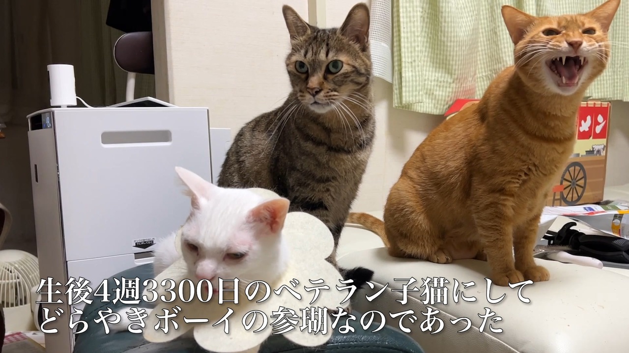 2013年8月の終わりに公園で遭遇したトラ猫一家、そしてその中で最も自分に懐いた茶トラ3号こと参瑚。<br>野良生活を3年経て縁あって保護、家猫転職してから我が家でベテラン子猫兼どらやきボーイになりました。<br>我が家の三男坊として日々ドラ鳴きでアピールしてましたが、2022年8月も終わろうかというときに突然声が出なくなってしまい…。<br><br>簡単な登場猫紹介2022 <a href="http://blog.livedoor.jp/nekokamasu/archives/58867538.html" target="_blank" rel="noopener nofollow">http://blog.livedoor.jp/nekokamasu/archives/58867538.html</a><br>よくあるご質問 <a href="http://blog.livedoor.jp/nekokamasu/archives/57126148.html" target="_blank" rel="noopener nofollow">http://blog.livedoor.jp/nekokamasu/archives/57126148.html</a><br>ブログ <a href="http://blog.livedoor.jp/nekokamasu/" target="_blank" rel="noopener nofollow">http://blog.livedoor.jp/nekokamasu/</a><br><br>