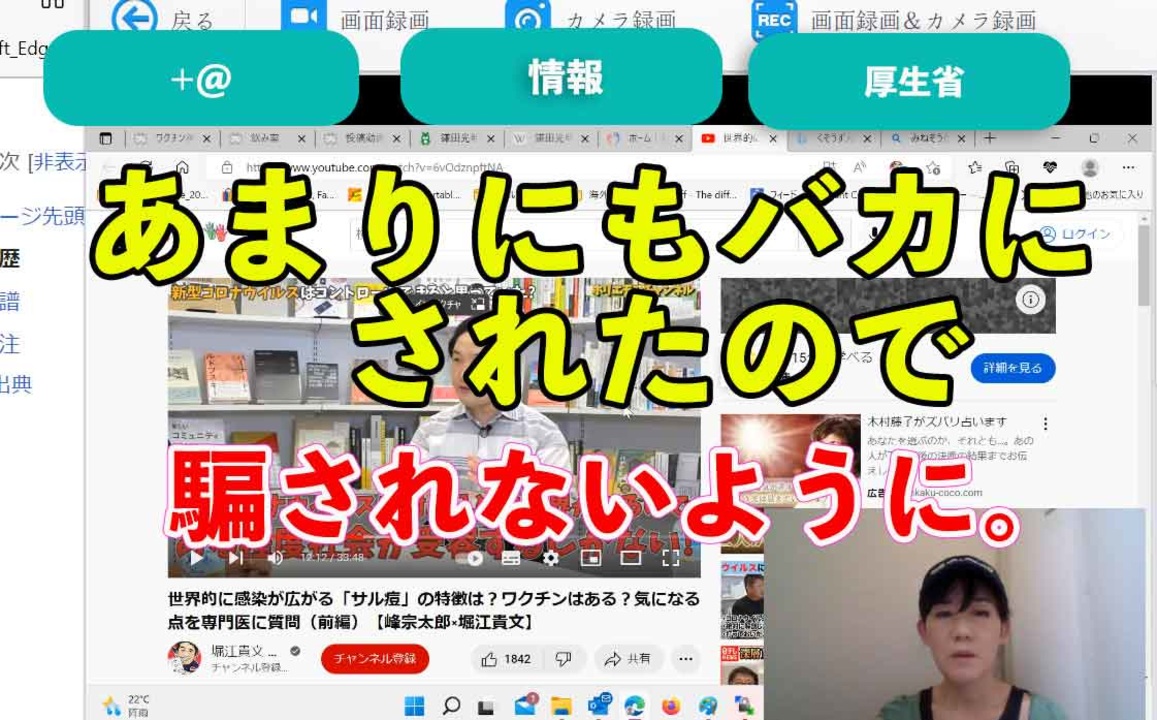 堀江氏×峰宗太郎 対談<br><a href="https://www.youtube.com/watch?v=6vOdznpftNA" target="_blank" rel="noopener nofollow">https://www.youtube.com/watch?v=6vOdznpftNA</a><br>とらこ先生動画<br><a href="https://www.nicovideo.jp/watch/sm41010287" target="_blank" rel="noopener nofollow">https://www.nicovideo.jp/watch/sm41010287</a><br><br>予防医療普及協会:あれれ、よく見る方達が。何をしているところなんだろう?<br><a href="https://yobolife.jp/members/" target="_blank" rel="noopener nofollow">https://yobolife.jp/members/</a><br><br>関連動画: 予防医療普及協会とゆかいな仲間たち<br><a href="https://www.nicovideo.jp/watch/sm41109502" target="_blank" rel="noopener nofollow">https://www.nicovideo.jp/watch/sm41109502</a><br><br>youtubeチャンネルにあげるつもりで作成していましたが、<br><br>違反警告が多すぎます<br>コミュニティ ガイドラインの違反警告により、現在動画をアップロードできません。でアップできませんでした。<br>====<br>■LIEN公式チャンネル<br><br>他に勝る為の分かる!楽しいIT・Webニュース(2~4配信/月)<br><a href="https://lin.ee/ZAdBrCJ" target="_blank" rel="noopener nofollow">https://lin.ee/ZAdBrCJ</a><br>(お友達登録是非宜しくお願いします!)<br><br>■まとめサイト 解毒方法他コロナの真実 <a href="https://akiramenai.xyz" target="_blank" rel="noopener nofollow">https://akiramenai.xyz</a><br><br><br>■ピアノチャンネルも気が向いたら遊びに来てください<br><a href="https://www.youtube.com/channel/UCiJ2BUz_6wIvVP3gN3PT-3g" target="_blank" rel="noopener nofollow">https://www.youtube.com/channel/UCiJ2BUz_6wIvVP3gN3PT-3g</a><br><br><br>