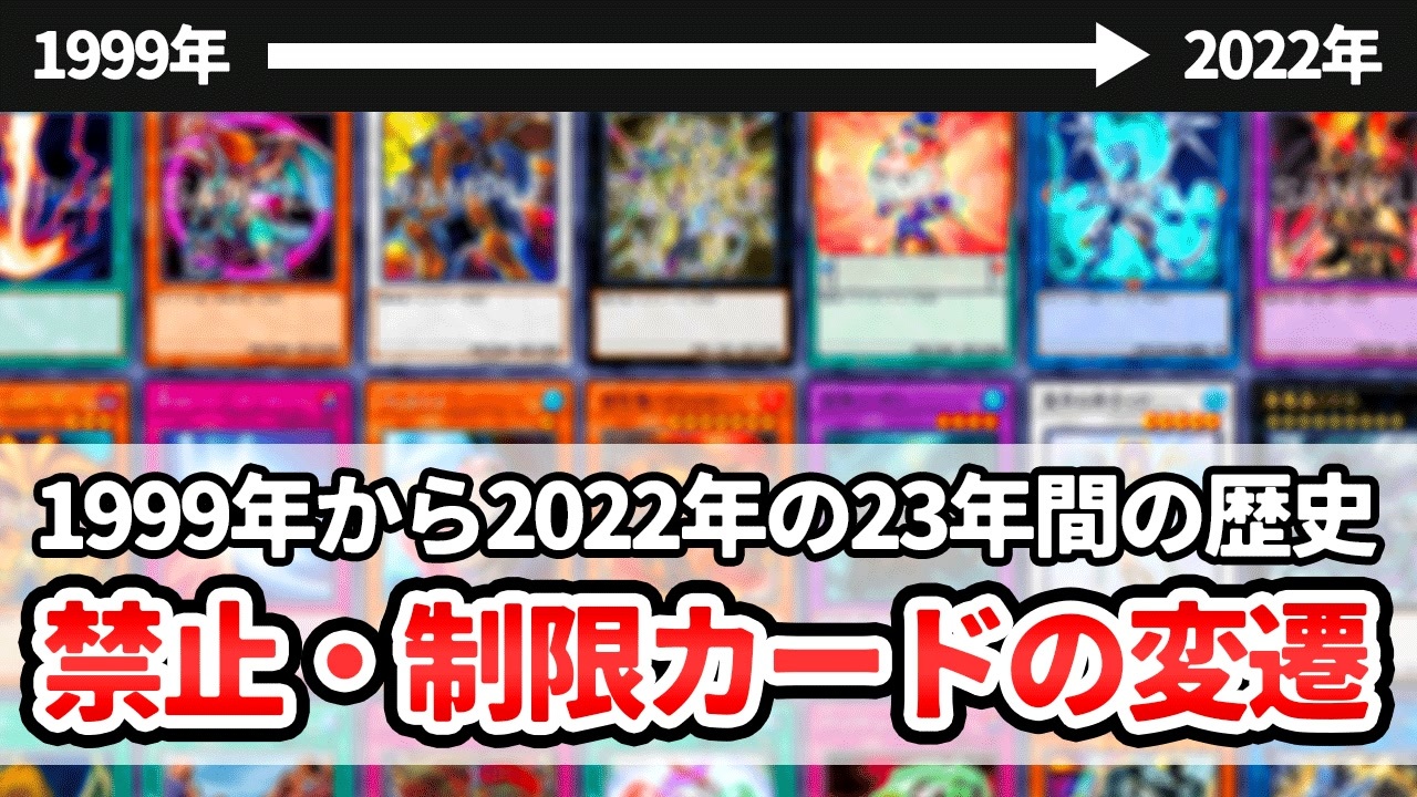 23年間のリミットレギュレーションを、カード1枚1枚動かして視覚化してみました。<br>環境の歴史の追想を楽しんてもらえると嬉しいです。<br><br>↓目次<br><a href="#" class="seekTime" data-seekTime="0:00" onclick="seekNicoPlayer('#0:00'); return false;">#0:00</a> 1期<br><a href="#" class="seekTime" data-seekTime="0:24" onclick="seekNicoPlayer('#0:24'); return false;">#0:24</a> 2期<br><a href="#" class="seekTime" data-seekTime="2:04" onclick="seekNicoPlayer('#2:04'); return false;">#2:04</a> 3期<br><a href="#" class="seekTime" data-seekTime="2:41" onclick="seekNicoPlayer('#2:41'); return false;">#2:41</a> 4期<br><a href="#" class="seekTime" data-seekTime="4:41" onclick="seekNicoPlayer('#4:41'); return false;">#4:41</a> 5期<br><a href="#" class="seekTime" data-seekTime="6:44" onclick="seekNicoPlayer('#6:44'); return false;">#6:44</a> 6期<br><a href="#" class="seekTime" data-seekTime="8:50" onclick="seekNicoPlayer('#8:50'); return false;">#8:50</a> 7期<br><a href="#" class="seekTime" data-seekTime="10:45" onclick="seekNicoPlayer('#10:45'); return false;">#10:45</a> 8期<br><a href="#" class="seekTime" data-seekTime="12:42" onclick="seekNicoPlayer('#12:42'); return false;">#12:42</a> 9期<br><a href="#" class="seekTime" data-seekTime="17:28" onclick="seekNicoPlayer('#17:28'); return false;">#17:28</a> 10期<br><a href="#" class="seekTime" data-seekTime="23:18" onclick="seekNicoPlayer('#23:18'); return false;">#23:18</a> 11期<br><br>当たったクリエイターチケット使っちゃった(・ω<)<br><br>【素材・制作者様】<br><a href="https://kahaduxxxe.booth.pm/" target="_blank" rel="noopener nofollow">https://kahaduxxxe.booth.pm/</a><br><a href="https://twitter.com/akr_1020" target="_blank" rel="noopener nofollow">https://twitter.com/akr_1020</a><br><br>【Twitter】<br><a href="https://twitter.com/hapitomax" target="_blank" rel="noopener nofollow">https://twitter.com/hapitomax</a>