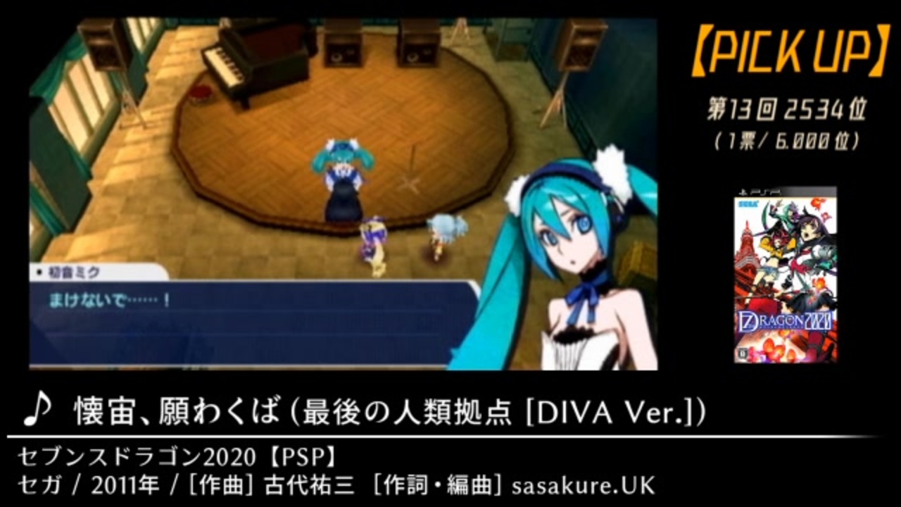 トリを飾るにふさわしい人物と見込んだので<br><br> <br><br>■諸般のお知らせ<br><br>・本動画は、「第13回みんなで決めるゲーム音楽ベスト100(+900)」の<br>補遺編収録を告知した曲と冒頭BGM、それらに加えて何曲かを収録した動画です(Part14~35まで)<br>音源の大半は既出なのでご注意ください<br> ⇒開票結果リンク先:<a href="https://w.atwiki.jp/gamemusicbest100/pages/8349.html" target="_blank" rel="noopener nofollow">https://w.atwiki.jp/gamemusicbest100/pages/8349.html</a><br><br><br>・企画についての仔細はブログにて<br>(動画内のスクショを視聴者の方々より募集しておりました。<br>制作告知以来、多数の投稿をいただき、本当にありがとうございました)<br>⇒第13回動画用ブログ:<a href="https://kezukee-nicoblomaga.hatenablog.com/entry/ar1958036" target="_blank" rel="noopener nofollow">https://kezukee-nicoblomaga.hatenablog.com/entry/ar1958036</a><br><br><br>・全体としてネタバレだらけです。注意して下さい<br><br><br>・曲紹介の際に記載している年表記は「曲の発表年」です(基本的には出典ゲームの発売年ですが、DLCなどの都合で違ってくる場合がありますので、その際は動画内にて補足します)<br><br><br>・収録した各曲の冒頭にて、コメントや雑記を挿入しております<br>表示時間に対して字数が多いので、じっくり読みたい方は一時停止推奨です<br><br><br>・<a href="#" class="seekTime" data-seekTime="21:51" onclick="seekNicoPlayer('#21:51'); return false;">#21:51</a>~、<a href="#" class="seekTime" data-seekTime="69:42" onclick="seekNicoPlayer('#69:42'); return false;">#69:42</a>~:<br>⇒収録時間が5分以上の曲です<br><br><br>Part35→<a href="https://www.nicovideo.jp/watch/sm41014251" class="watch">sm41014251</a> マイリスト:<a href="https://www.nicovideo.jp/mylist/69791041" target="_blank" rel="noopener">mylist/69791041</a><br><br>番外・補遺編1→<a href="https://www.nicovideo.jp/watch/sm39004531" class="watch">sm39004531</a>