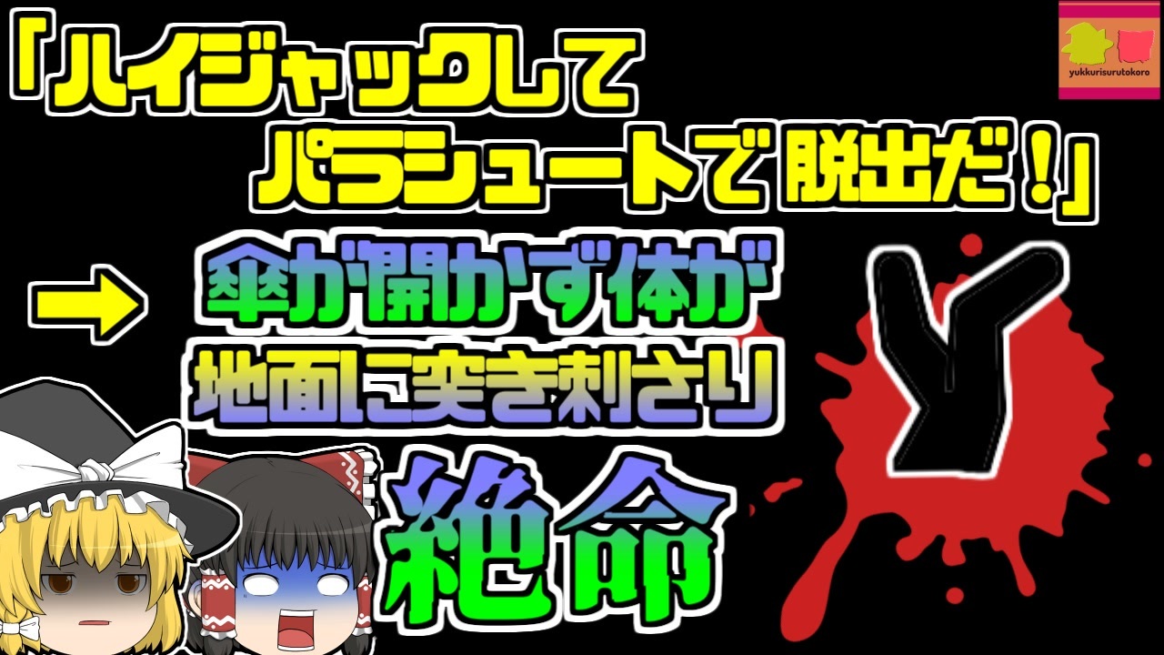 今回紹介するのは、以前からリクエストがありました「フィリピン航空812便ハイジャック事件」です。<br>2000年5月。フィリピンバンゴイ国際空港から、マニラ近郊の「ニノイ・アキノ国際空港」へ、国内定期便812便が飛び立ちました。<br>しかし、その直後に乗客の一人が銃と爆弾を取り出し、ハイジャックが発生。<br>彼は乗客や乗員の金品を奪い、カバンに詰め、パラシュートを装着し、高度1800mの上空から、単身飛び立ちました。<br><br>ですが、彼のパラシュートが正常に作動することはなく、男性はそのまま地面に墜落し、地上の農地の土に深く体が突き刺さった状態で発見されました。<br><br>実は彼が背負っていたパラシュートは、自作したもので、飛ぶ直前まで、パラシュートを開くためのヒモがついていないほど、杜撰なつくりをしており、それが作動しなかったために、彼は墜落して絶命してしまいました。<br><br><a href="#" class="seekTime" data-seekTime="00:00" onclick="seekNicoPlayer('#00:00'); return false;">#00:00</a> 冒頭挨拶<br><a href="#" class="seekTime" data-seekTime="1:24" onclick="seekNicoPlayer('#1:24'); return false;">#1:24</a> 発生地の説明<br><a href="#" class="seekTime" data-seekTime="2:06" onclick="seekNicoPlayer('#2:06'); return false;">#2:06</a> 国内定期便812便<br><a href="#" class="seekTime" data-seekTime="2:26" onclick="seekNicoPlayer('#2:26'); return false;">#2:26</a> ハイジャック発生<br><a href="#" class="seekTime" data-seekTime="3:35" onclick="seekNicoPlayer('#3:35'); return false;">#3:35</a> 飛び降りる準備もしていた<br><a href="#" class="seekTime" data-seekTime="5:01" onclick="seekNicoPlayer('#5:01'); return false;">#5:01</a> 1800m上空から脱出<br><a href="#" class="seekTime" data-seekTime="5:20" onclick="seekNicoPlayer('#5:20'); return false;">#5:20</a> 飛行機は無事到着<br><a href="#" class="seekTime" data-seekTime="6:45" onclick="seekNicoPlayer('#6:45'); return false;">#6:45</a> 発見<br><a href="#" class="seekTime" data-seekTime="7:37" onclick="seekNicoPlayer('#7:37'); return false;">#7:37</a> 開かなかったパラシュート<br><a href="#" class="seekTime" data-seekTime="8:51" onclick="seekNicoPlayer('#8:51'); return false;">#8:51</a> 背景には国の経済事情も?<br><a href="#" class="seekTime" data-seekTime="11:02" onclick="seekNicoPlayer('#11:02'); return false;">#11:02</a> 凶悪犯罪の多さ・注意点<br><a href="#" class="seekTime" data-seekTime="12:23" onclick="seekNicoPlayer('#12:23'); return false;">#12:23</a> 渡航前には「安全の手引き」の参照を<br><br>引用・出展・参考文献<br>外務省<br><a href="https://ishort.ink/JxRg" target="_blank" rel="noopener nofollow">https://ishort.ink/JxRg</a><br>フィリピン日本国大使館 「安全の手引き」<br><a href="https://ishort.ink/PMdi" target="_blank" rel="noopener nofollow">https://ishort.ink/PMdi</a><br>BBC NEWS<br><a href="https://ishort.ink/AX5n" target="_blank" rel="noopener nofollow">https://ishort.ink/AX5n</a><br>bandia2000.<br><a href="https://ishort.ink/5uTR" target="_blank" rel="noopener nofollow">https://ishort.ink/5uTR</a><br>UPI NEWS<br><a href="https://ishort.ink/KFtC" target="_blank" rel="noopener nofollow">https://ishort.ink/KFtC</a><br>CNN.com NEWS<br><a href="https://ishort.ink/Ag5s" target="_blank" rel="noopener nofollow">https://ishort.ink/Ag5s</a><br>world Vision<br>フィリピンの貧困問題の原因は?<br><a href="https://ishort.ink/zzdY" target="_blank" rel="noopener nofollow">https://ishort.ink/zzdY</a><br>その他視聴者提供資料など<br><br />※この動画は過去の事件を知り、現在でも同じことが発生する危険性を再認識、関与しないように促すための動画であり、視聴者を扇動、動揺を誘うためのコンテンツではありません。<br><br>ご要望にお応えして、メンバーシップの開設を行いました。<br>下記URLからも登録可能ですので、ご興味がある方は是非ご参加ください。<br><a href="https://www.youtube.com/channel/UCcT5a1J7XJW7CLYI2RKl4pw/join" target="_blank" rel="noopener nofollow">https://www.youtube.com/channel/UCcT5a1J7XJW7CLYI2RKl4pw/join</a><br><br><br>Twitter<br>→<a href="https://twitter.com/yukkurisurutoko" target="_blank" rel="noopener nofollow">https://twitter.com/yukkurisurutoko</a><br><br>取り急ぎ、簡易的にですがマイリストを作りました。<br>【ゆっくり解説】事故・事件関係紹介リスト <br><a href="https://www.nicovideo.jp/mylist/71034319" target="_blank" rel="noopener nofollow">https://www.nicovideo.jp/mylist/71034319</a><br>【ゆっくり解説】放射線系事故<br><a href="https://www.nicovideo.jp/mylist/71034368" target="_blank" rel="noopener nofollow">https://www.nicovideo.jp/mylist/71034368</a><br>【ゆっくり解説】鉄道系事故・事件関連<br><a href="https://www.nicovideo.jp/mylist/71034379" target="_blank" rel="noopener nofollow">https://www.nicovideo.jp/mylist/71034379</a>